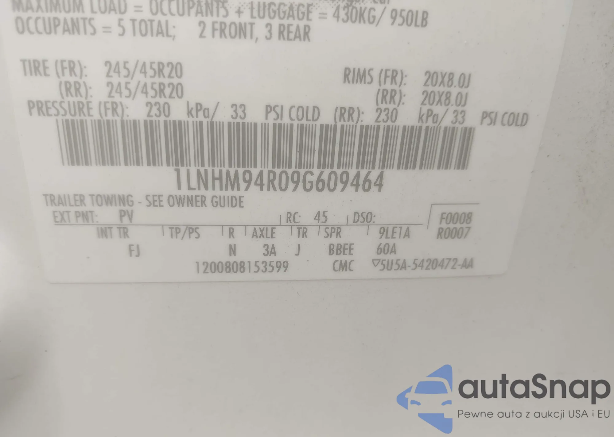 LOT: 42959082 VIN: 1LNHM94R09G609464