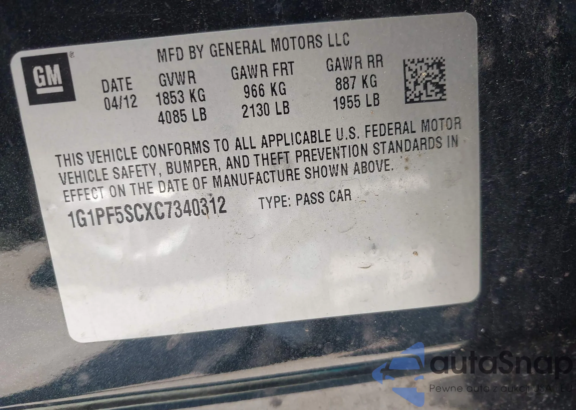 • VIN 1G1PF5SCXC7340312