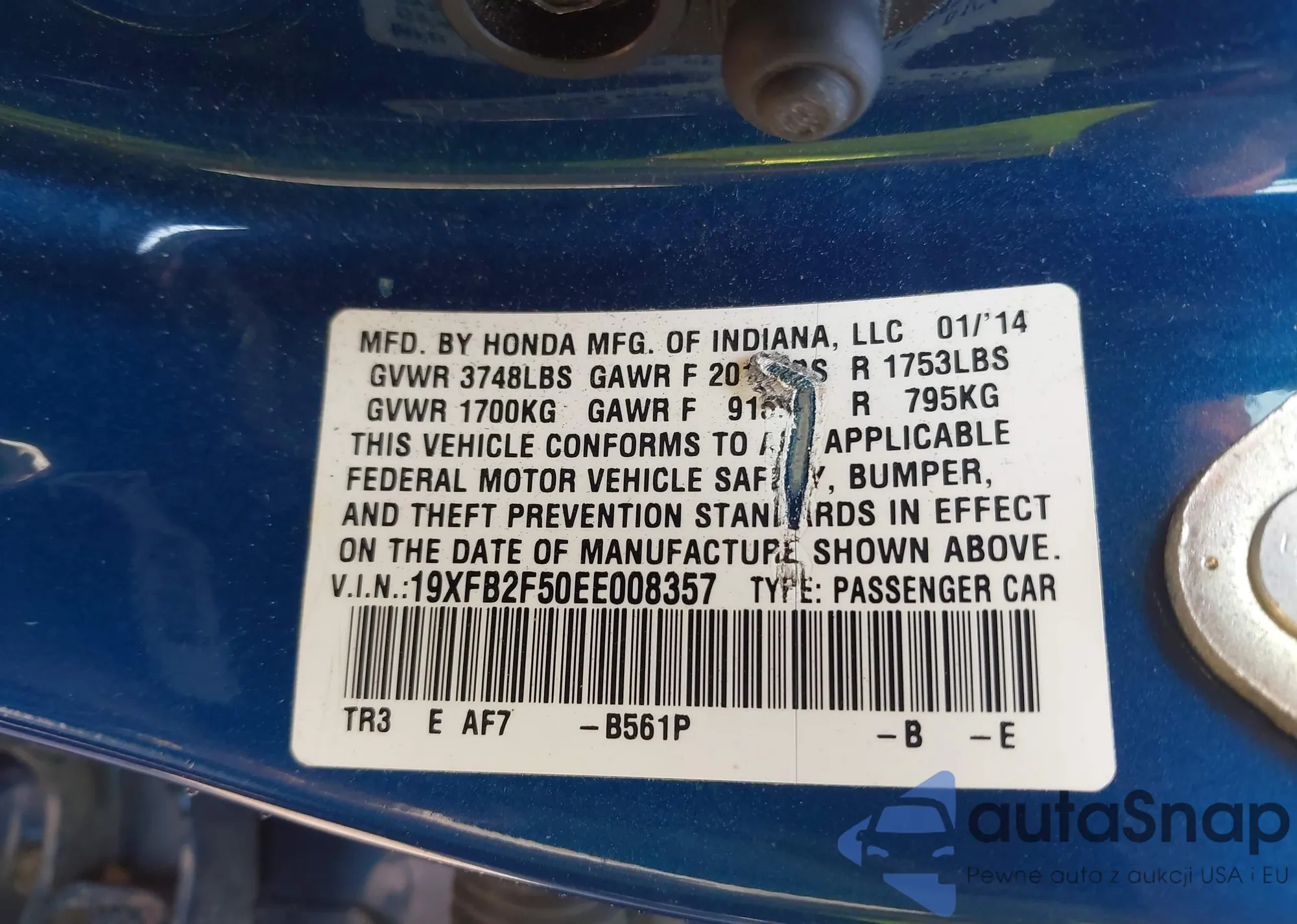 • VIN 2HKRM4H32EH601910