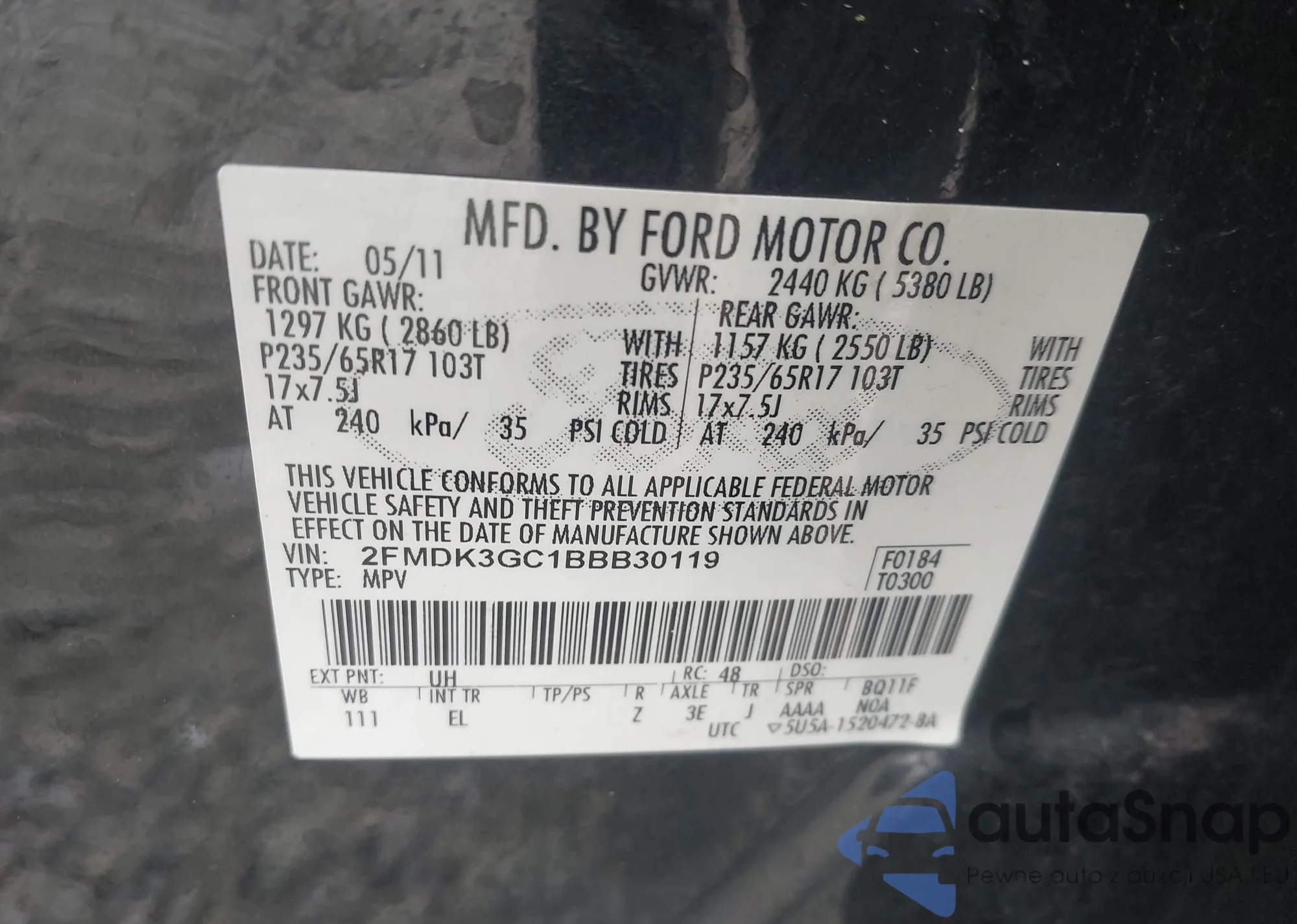 • VIN 1FA6P8CFXR5422268