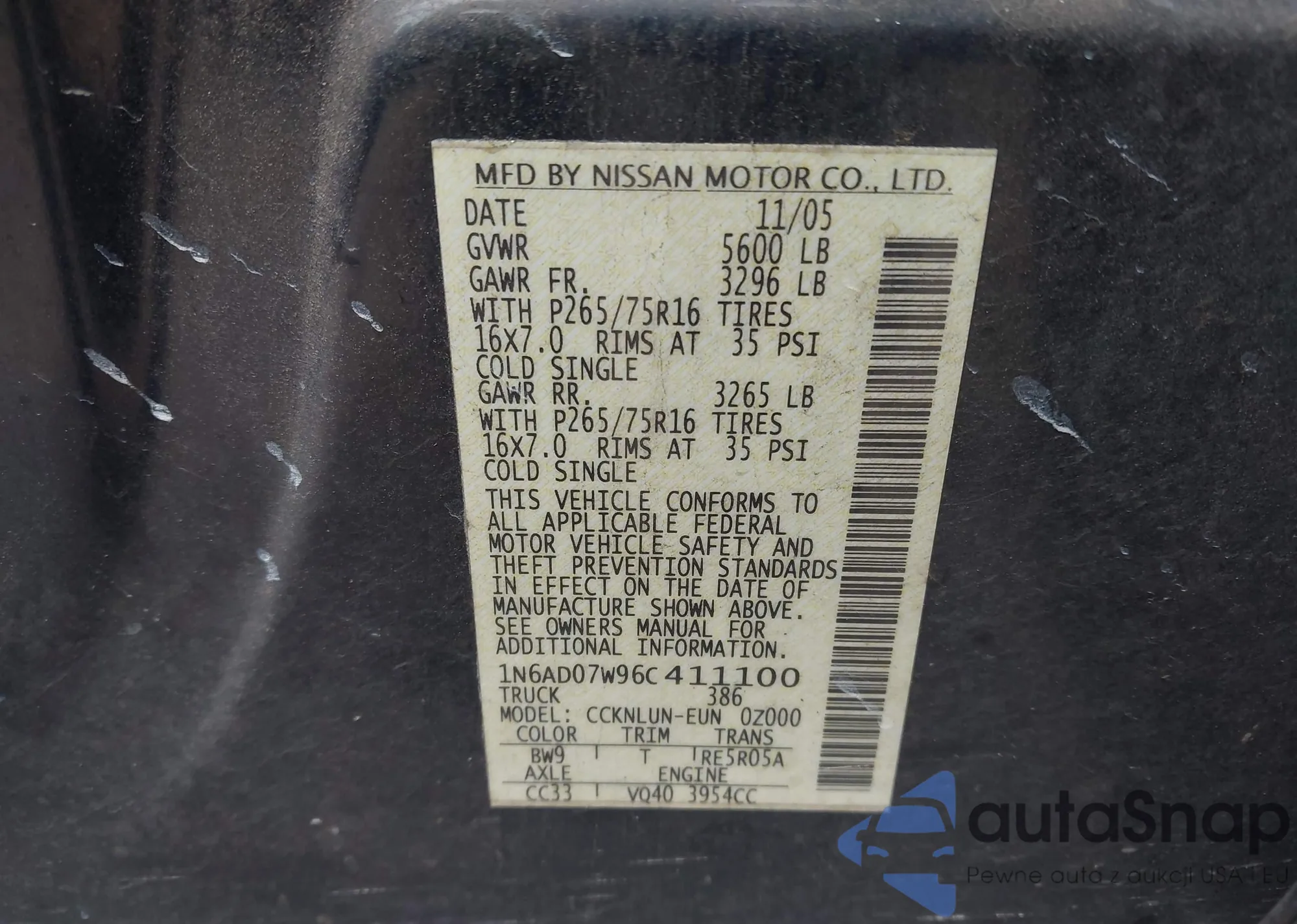 • VIN 1N6AD07W96C411100