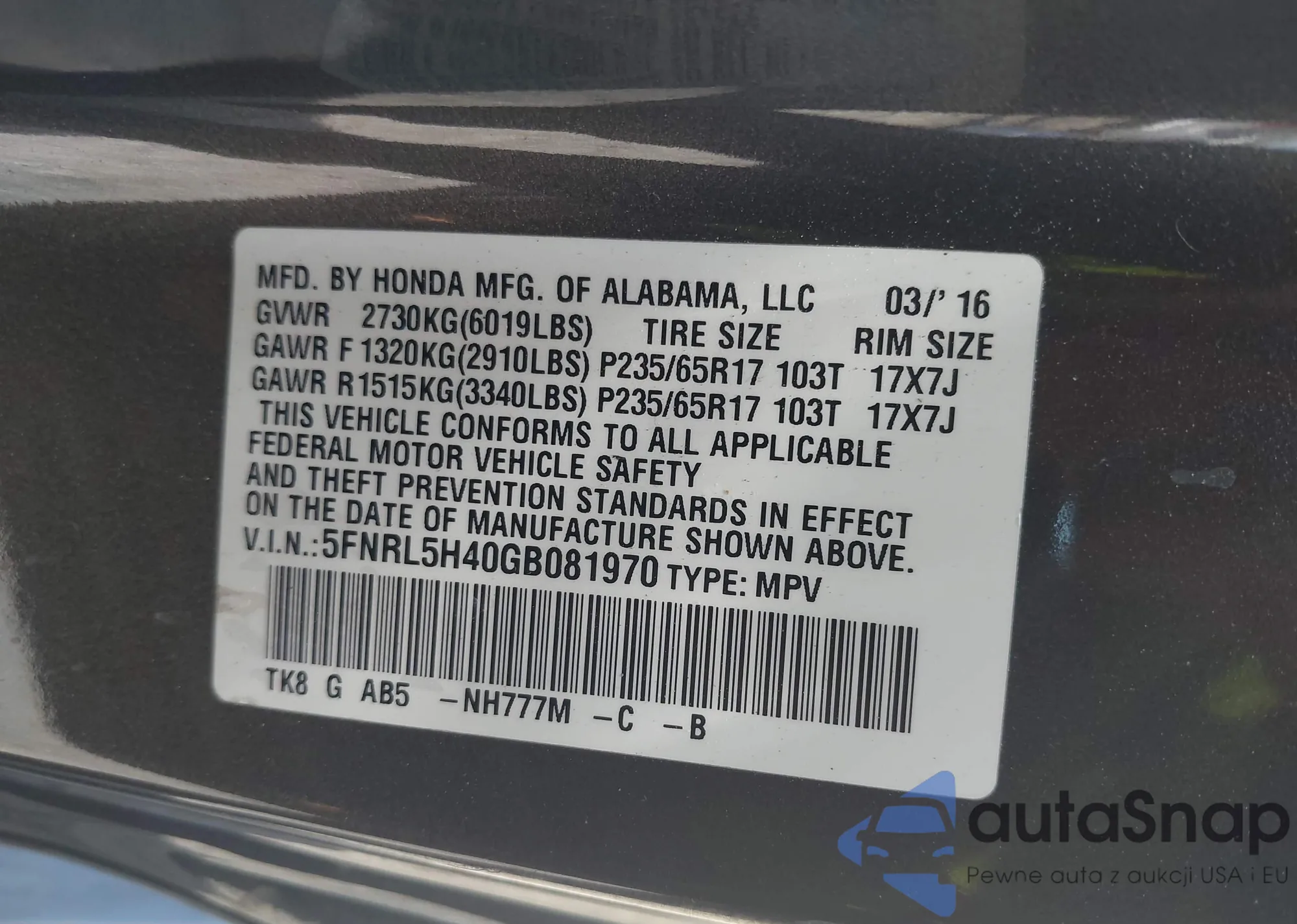 • VIN 2HGFC2F68LH531599