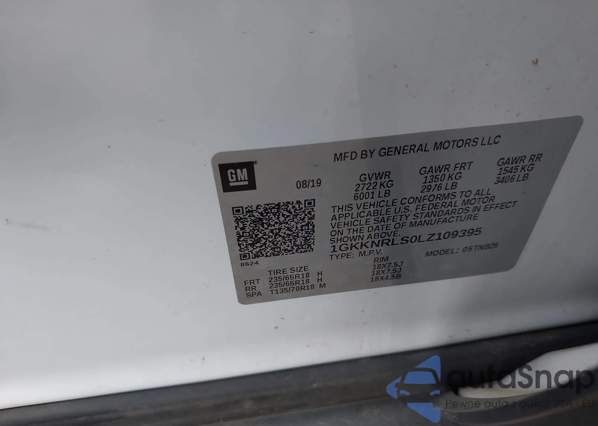 • VIN 1GKKNRLS0LZ109395