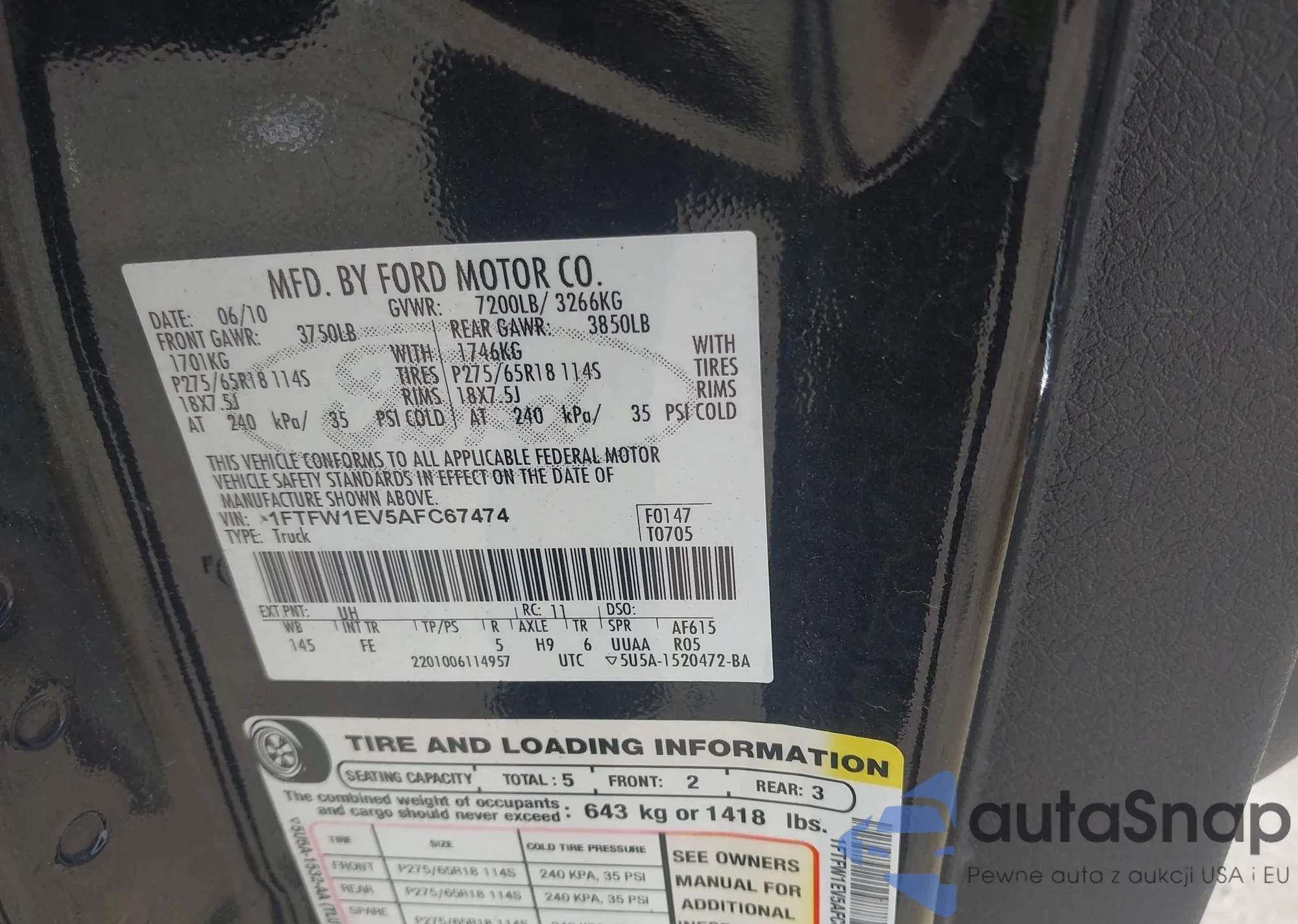 • VIN 1FTFW1EV5AFC67474