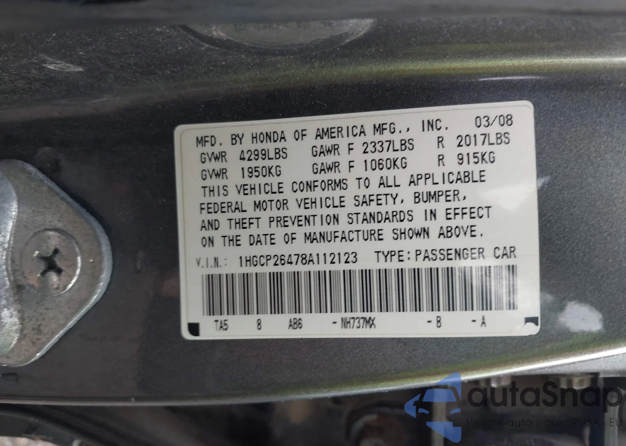LOT: 42997574 VIN: 1NXBR32E58Z979040
