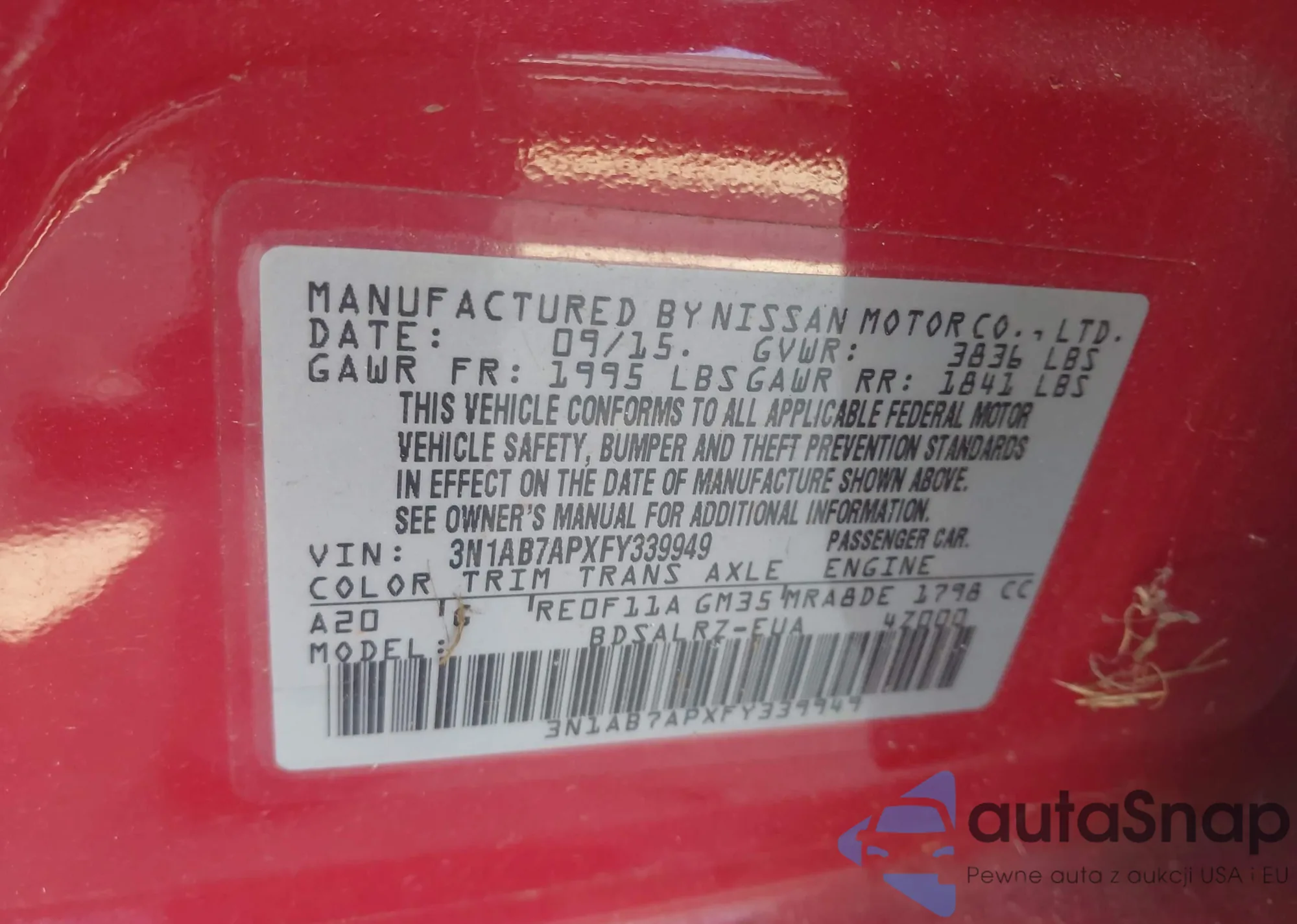 LOT: 42984187 VIN: 3N1AB7APXFY339949