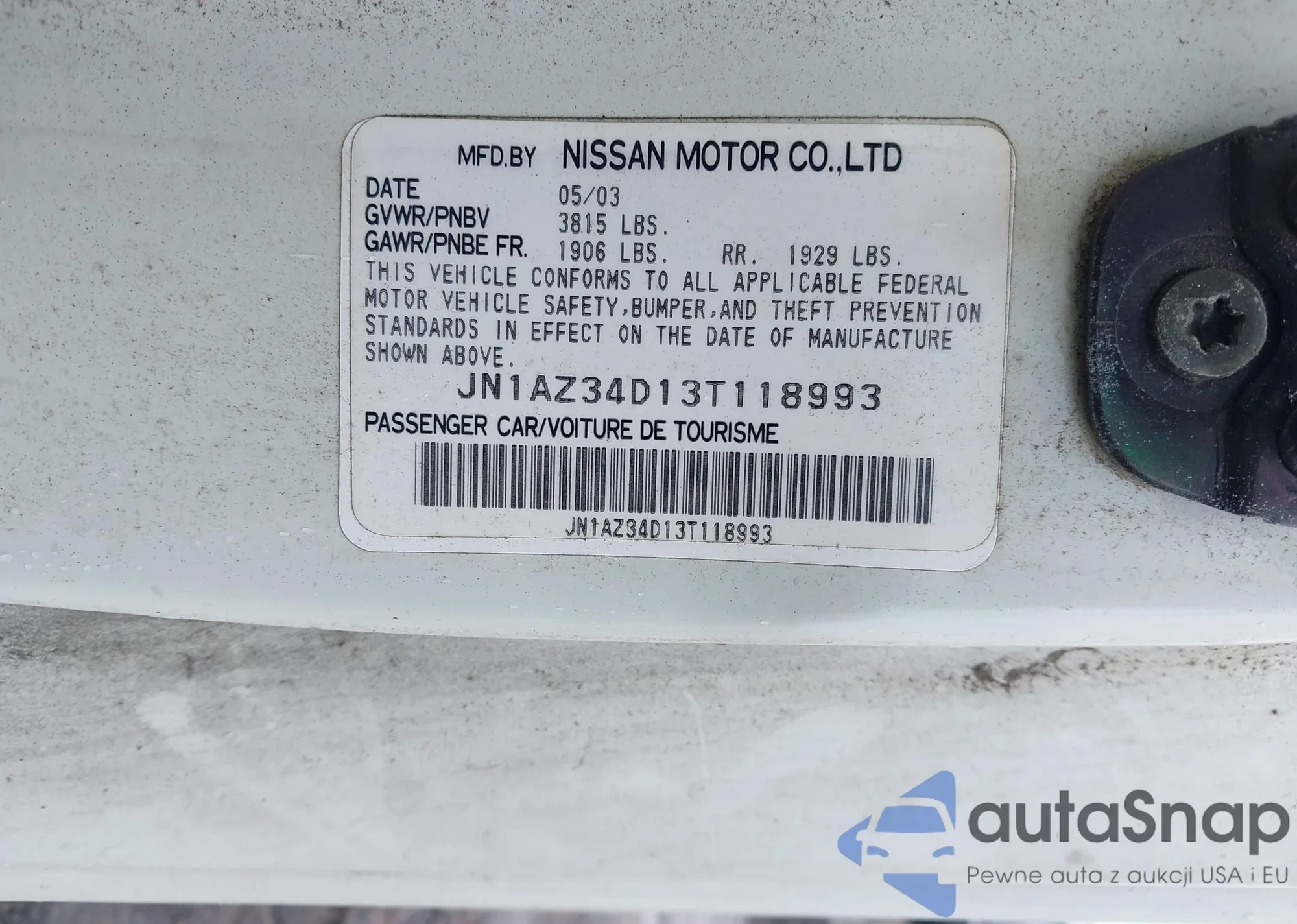 • VIN JN1AZ34D13T118993