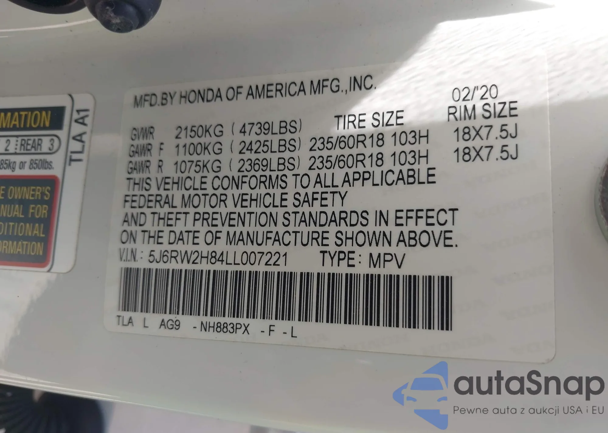 LOT: 43136953 VIN: 2HGFE2F59NH610851