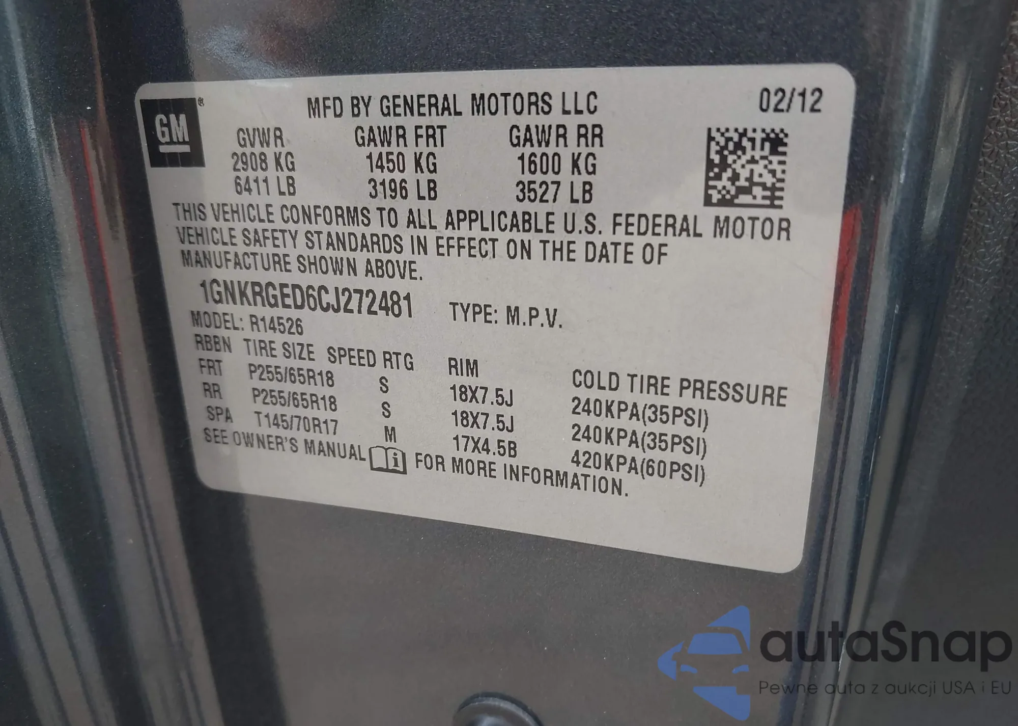 LOT: 42974802 VIN: 1GNKRGED6CJ272481