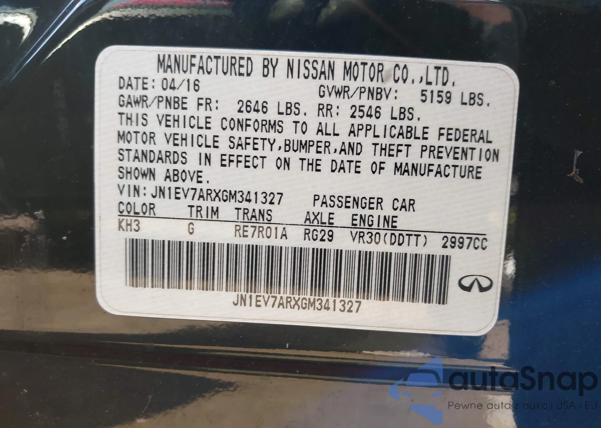 LOT: 43008783 VIN: JN1EV7ARXGM341327