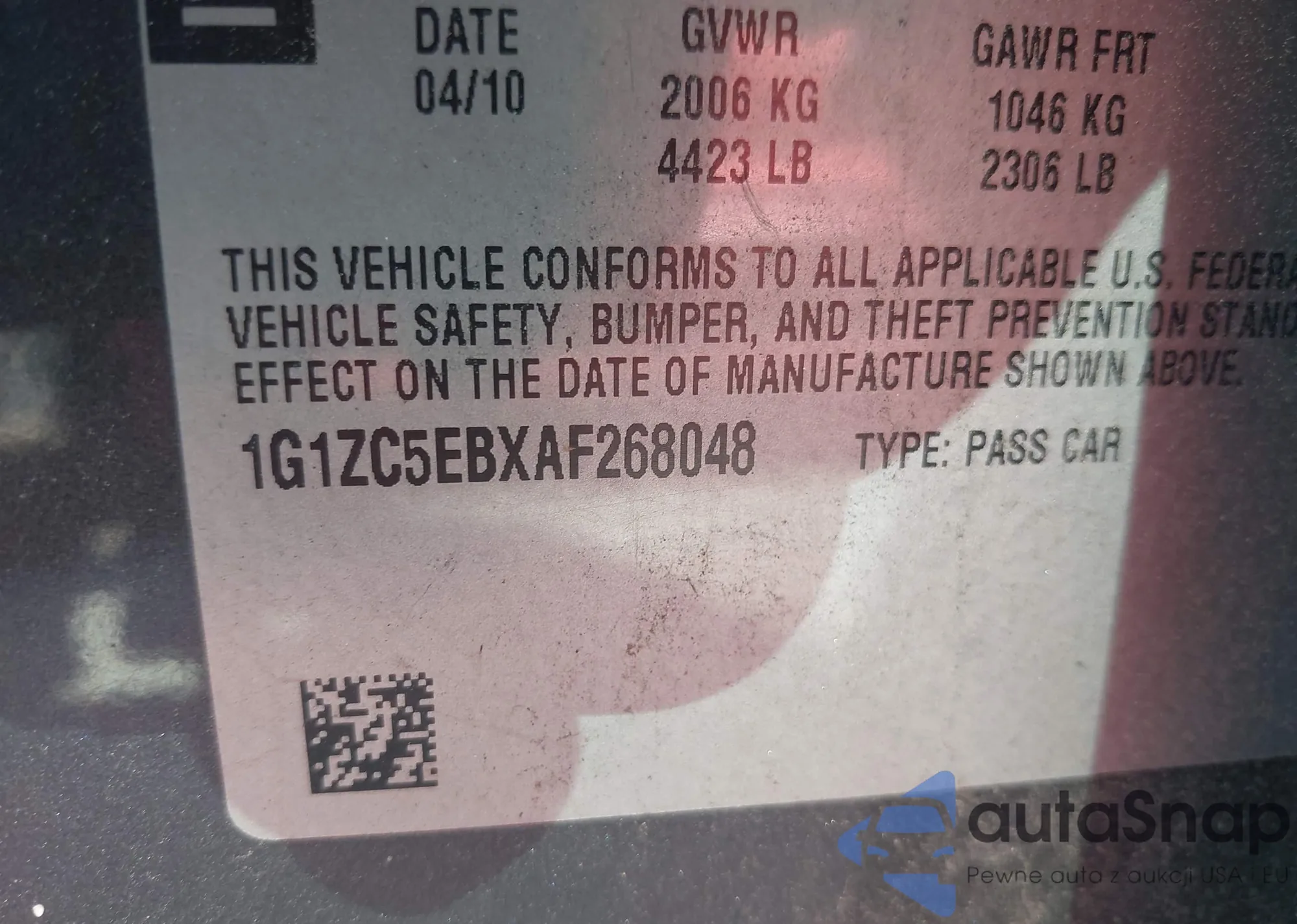 • VIN 1G1ZC5EBXAF268048