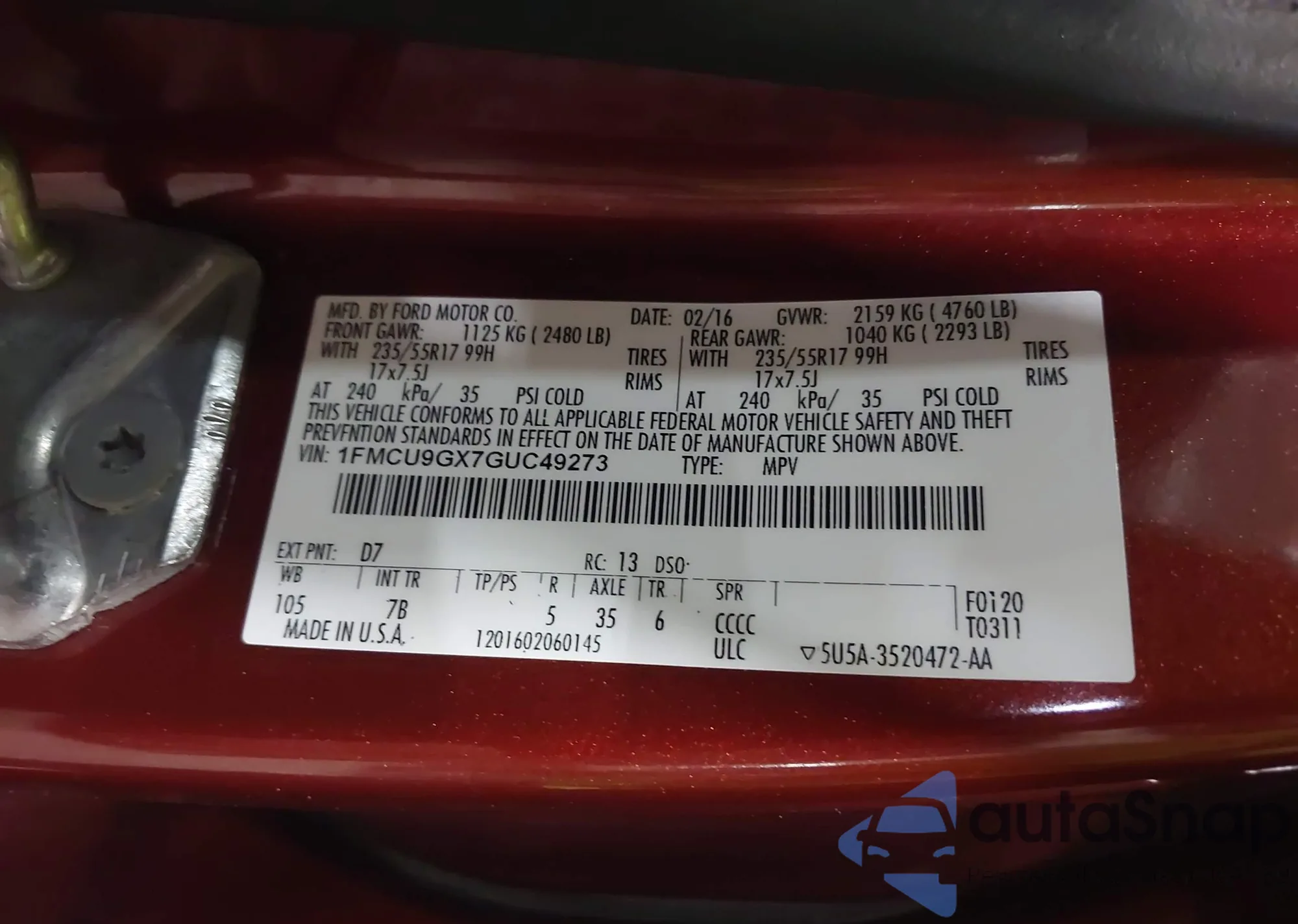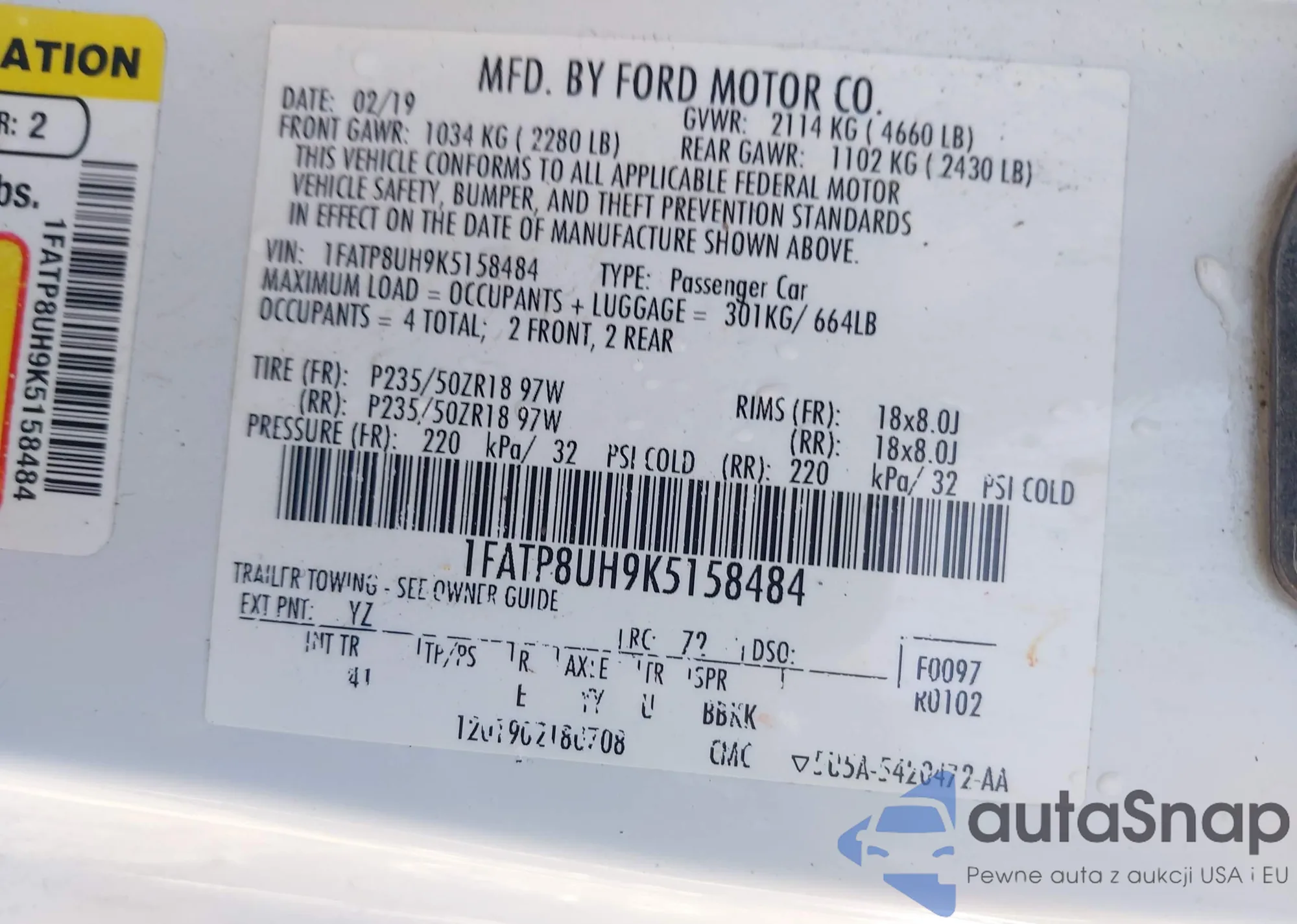 LOT: 82058875 VIN: 1FADP5AU5GL117065