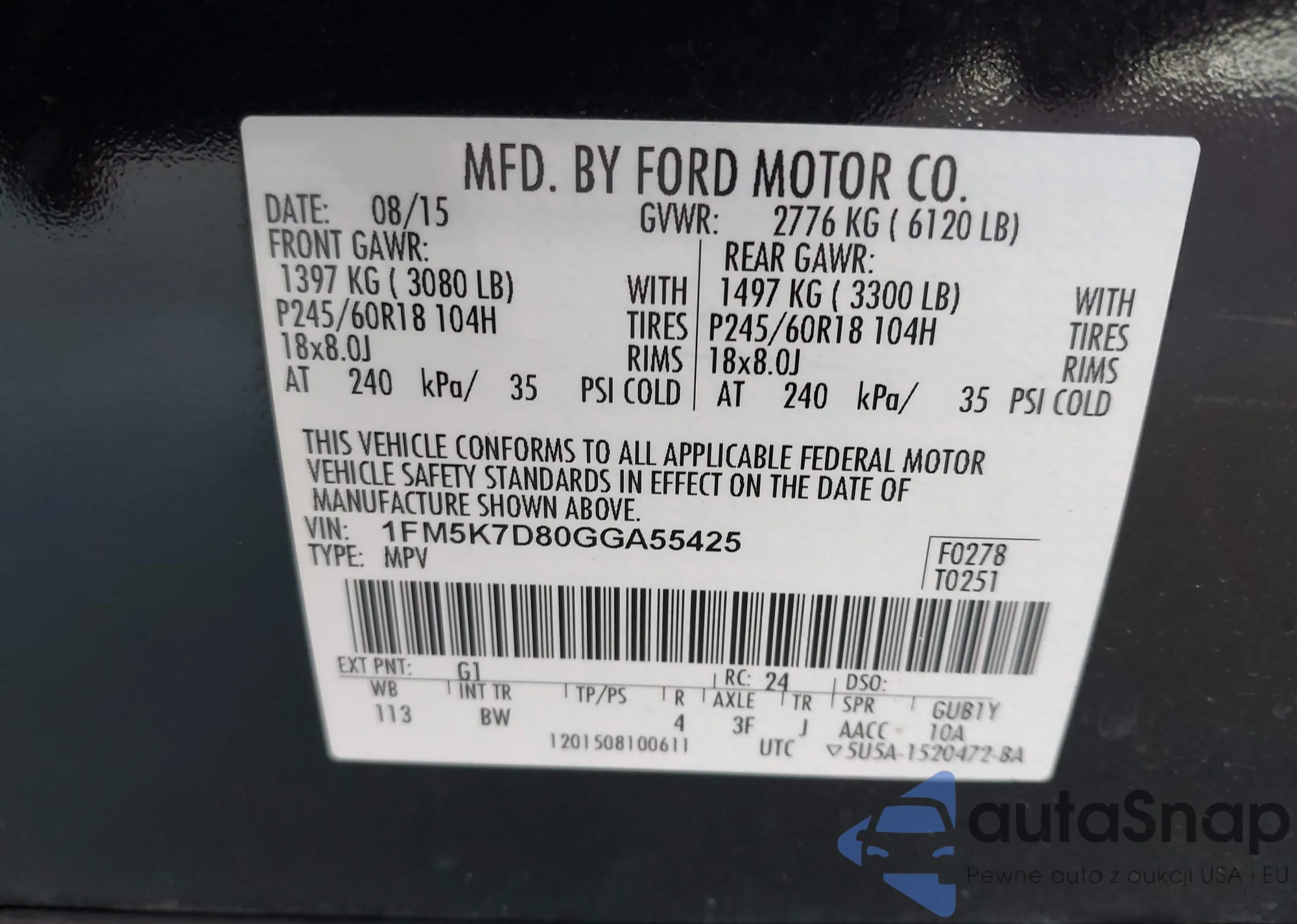 • VIN 1FADP5AU5GL117065