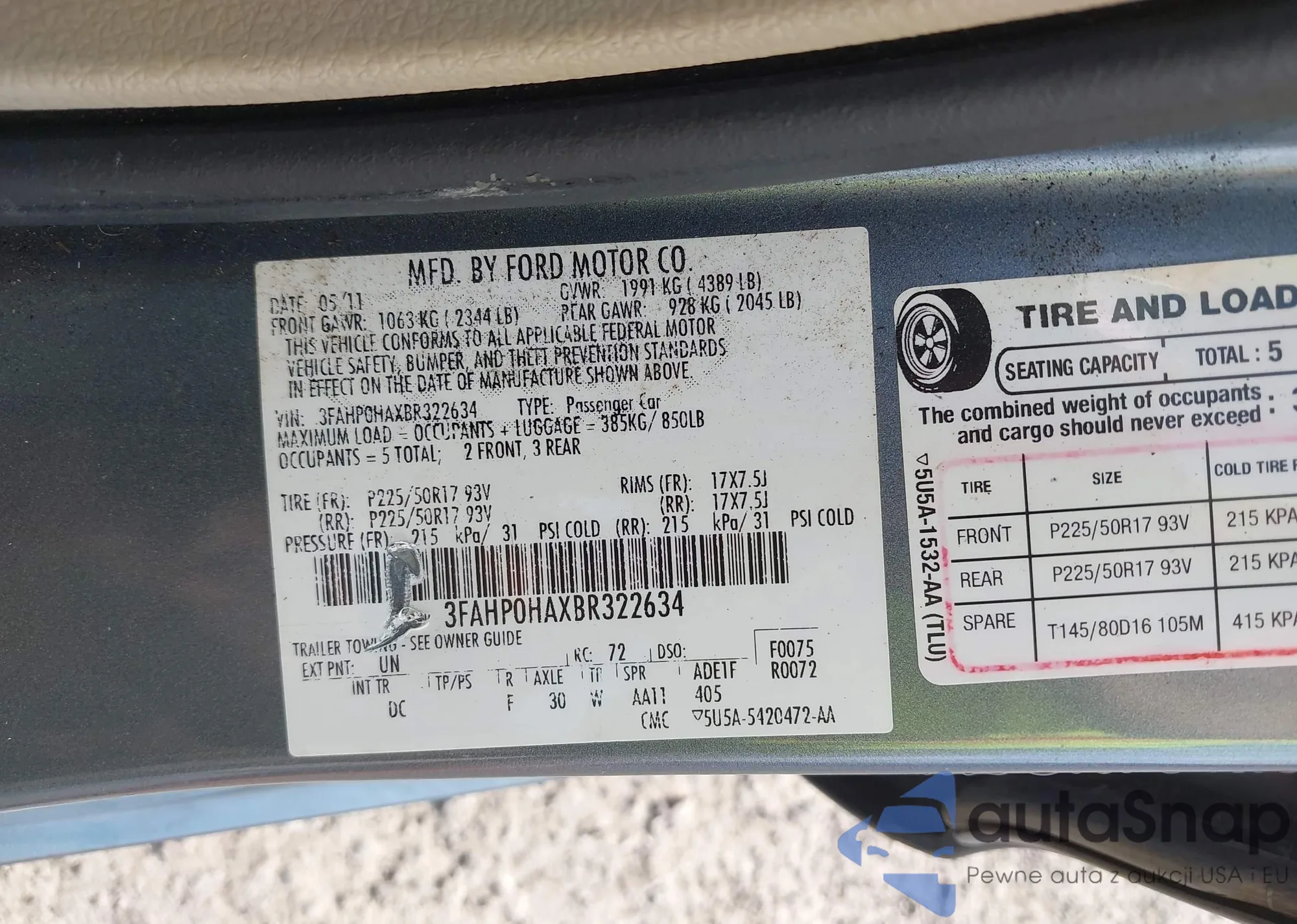 • VIN 3FAHP0HAXBR322634