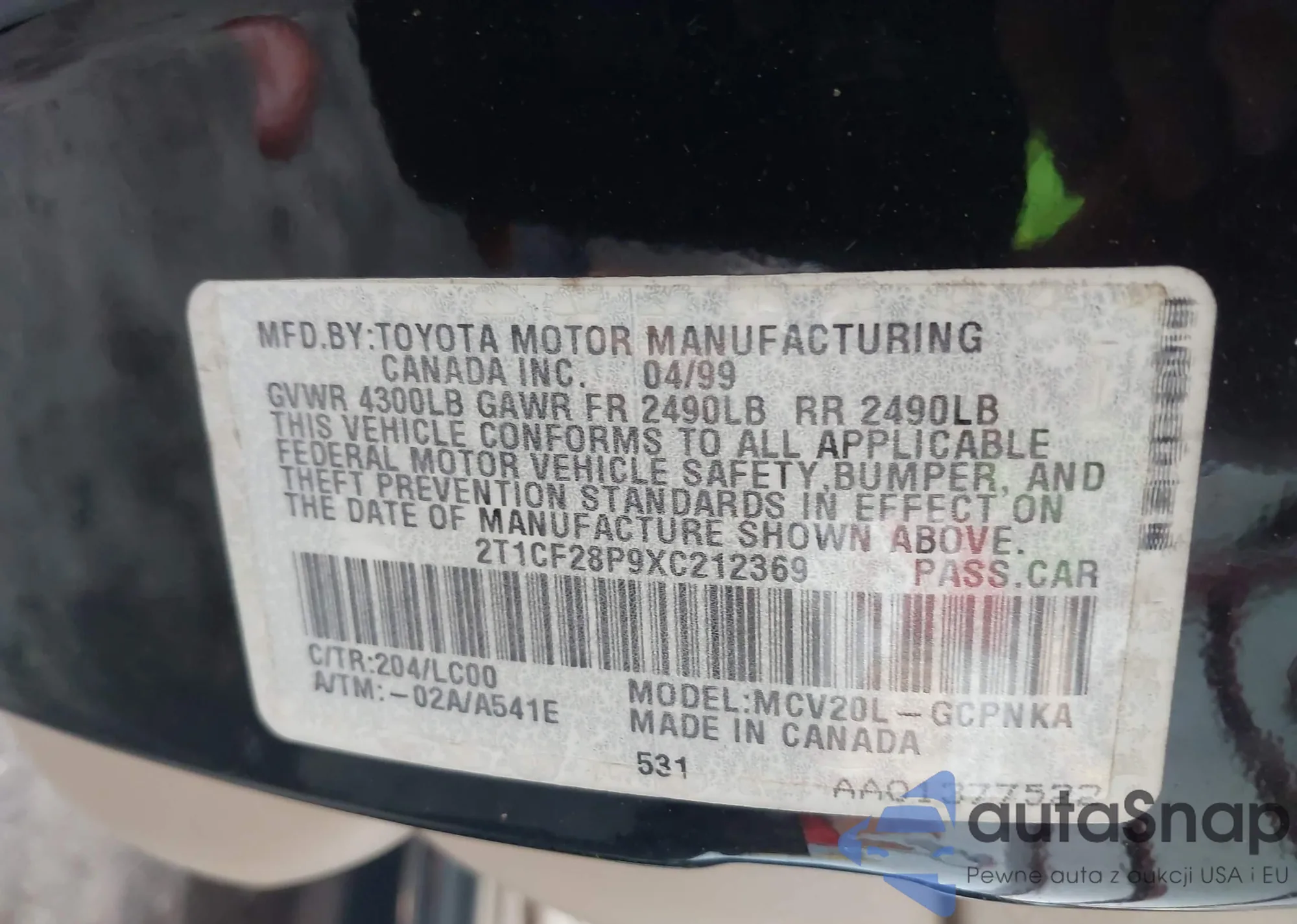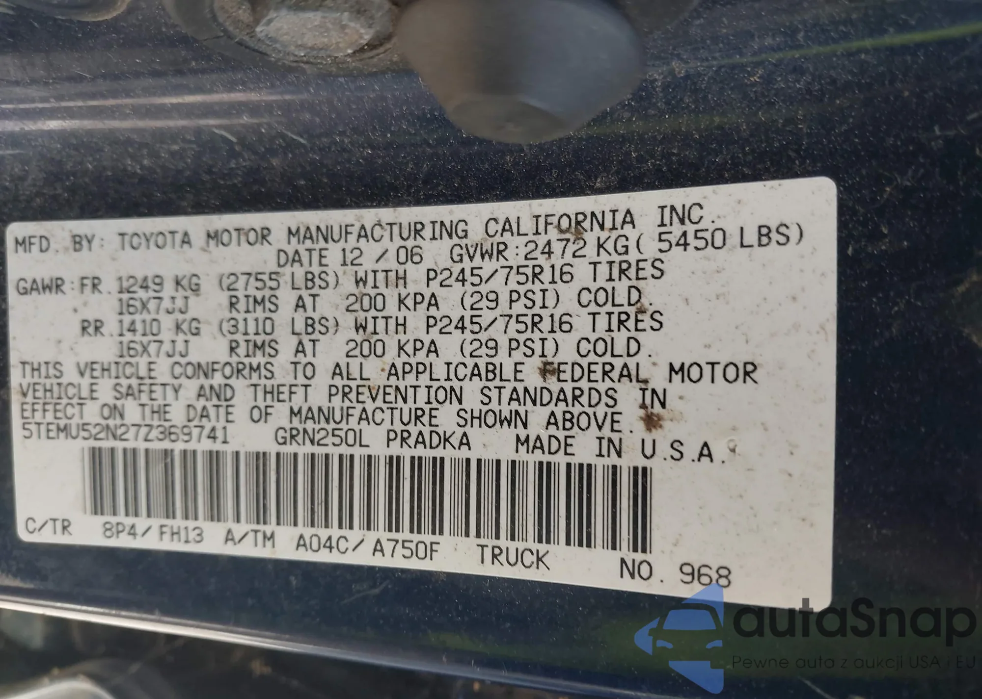 • VIN 5TEMU52N27Z369741