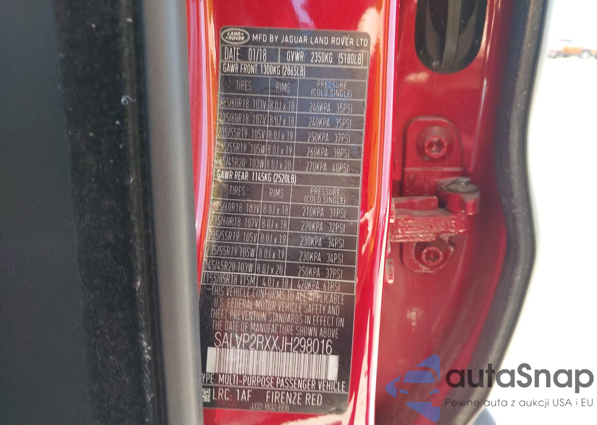 • VIN 5TDBZRFHXJS818317