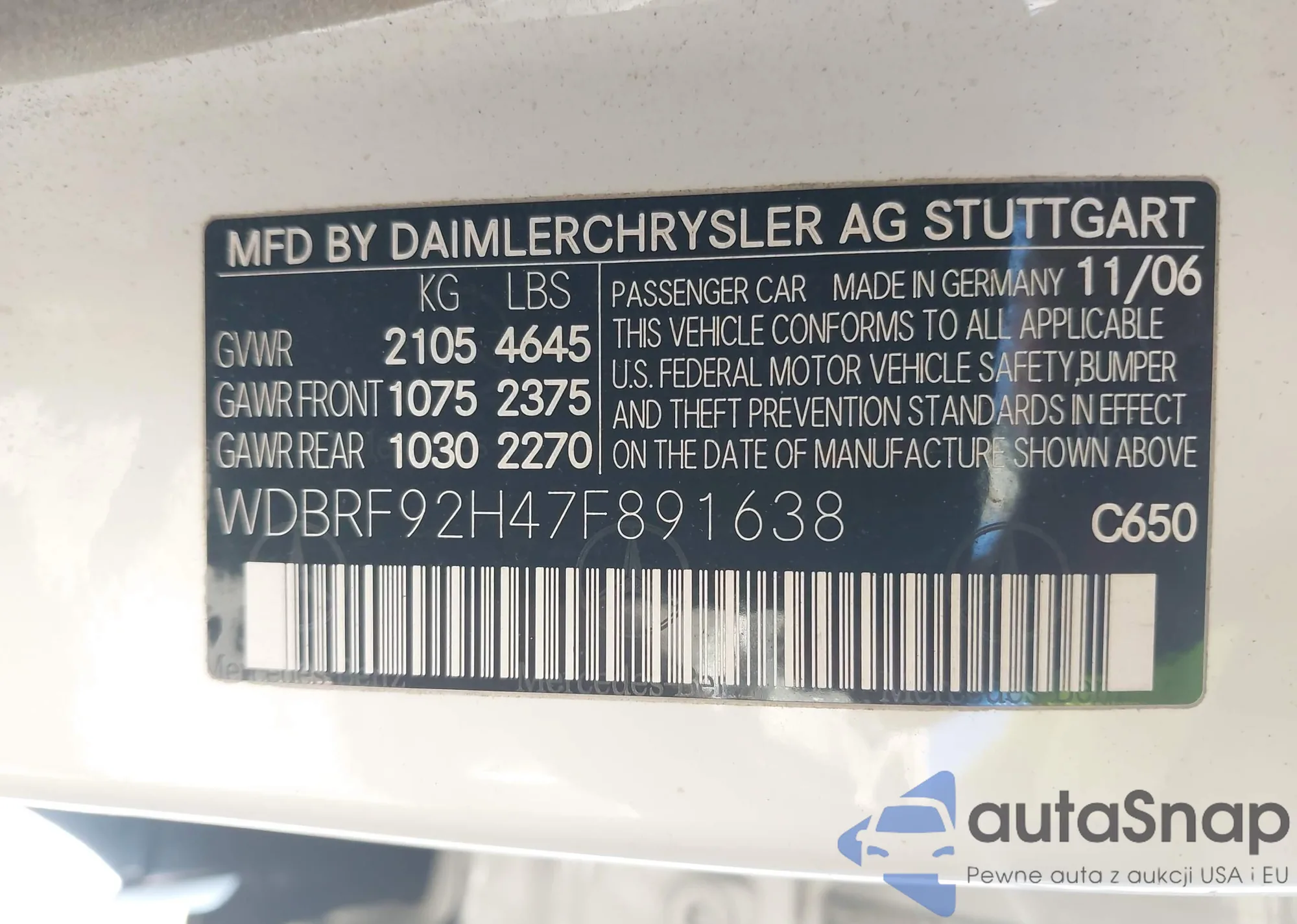 • VIN WDBRF92H47F891638
