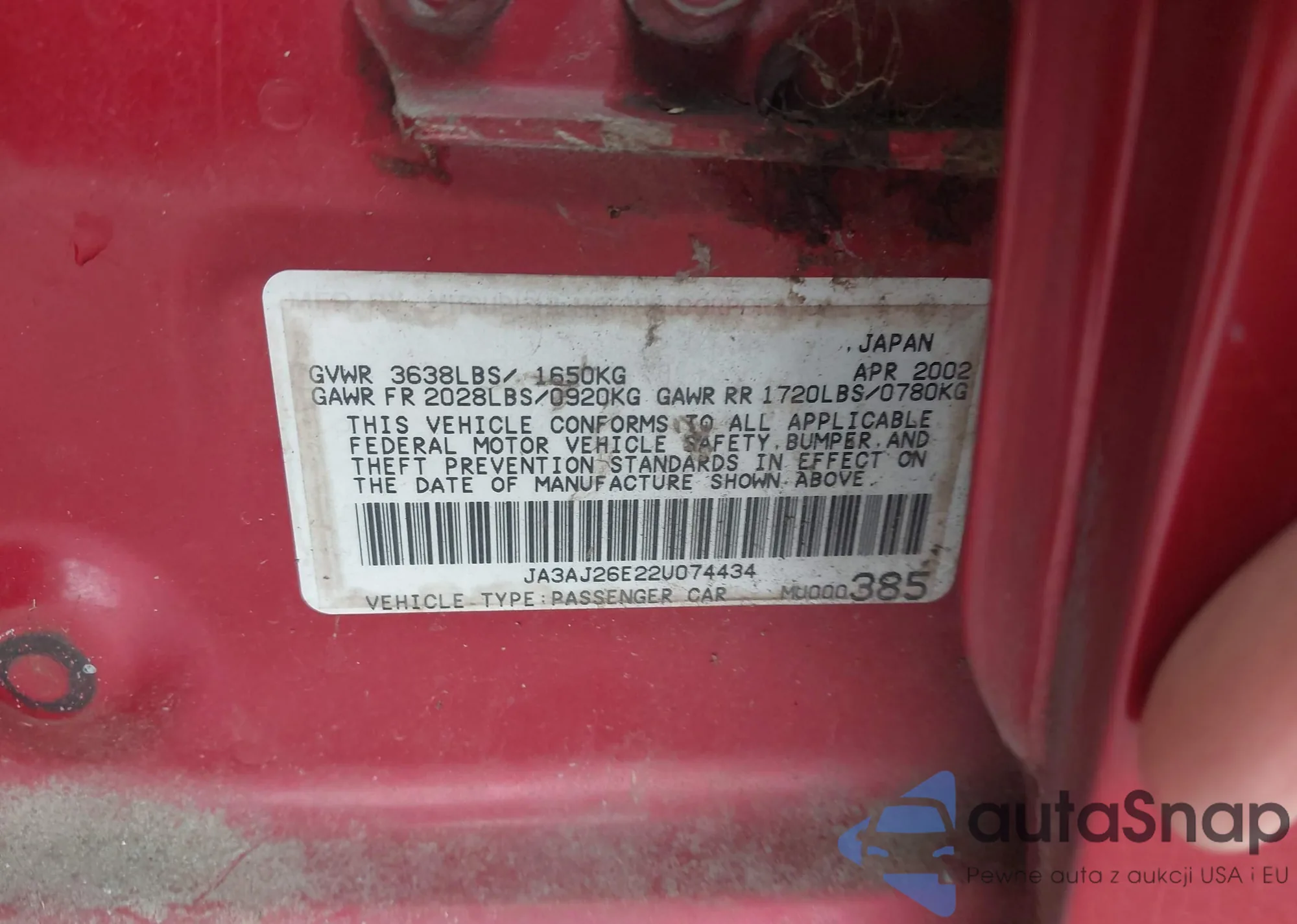 LOT: 42905892 VIN: JA3AJ26E22U074434