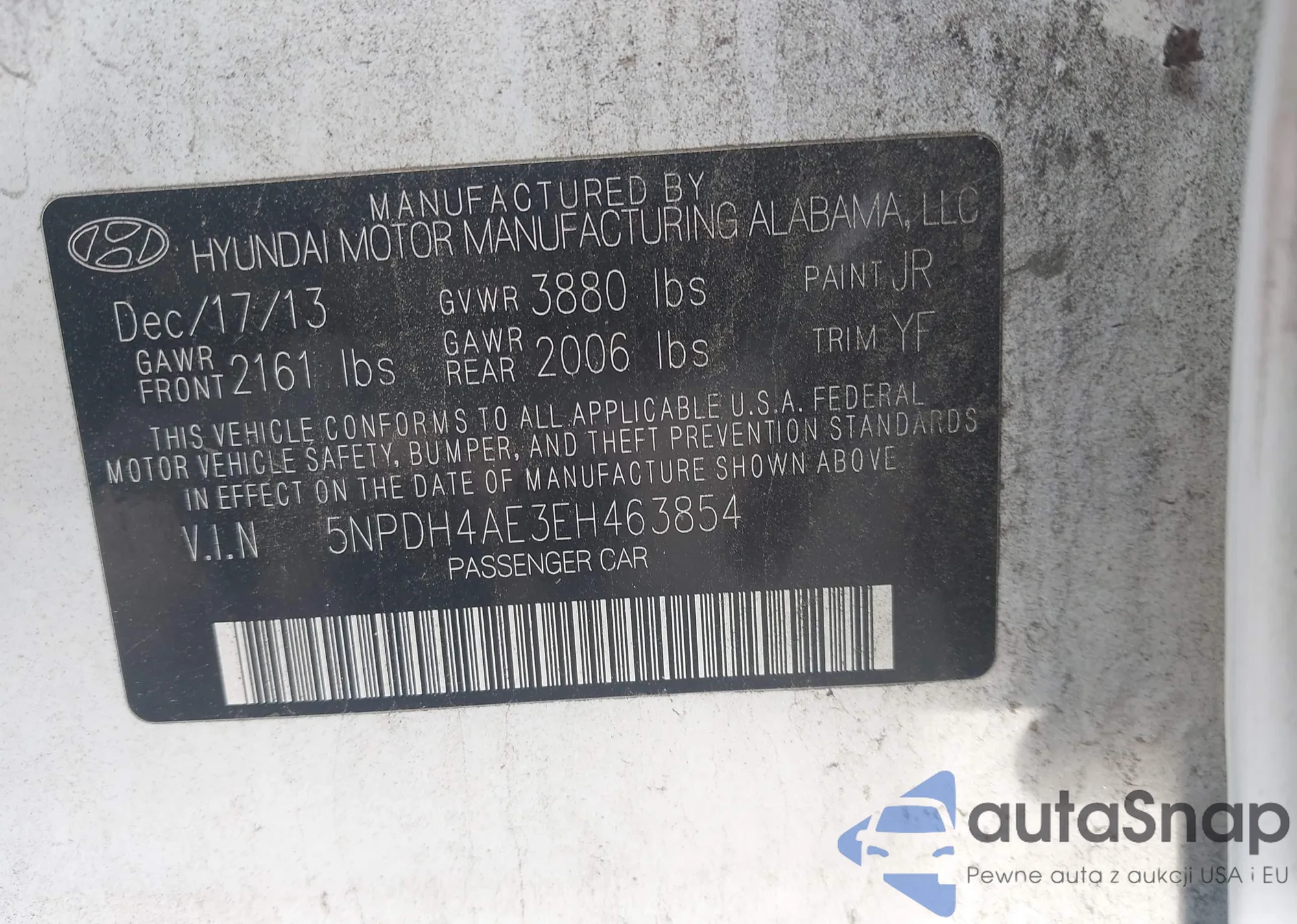 • VIN 5NPDH4AE3EH463854