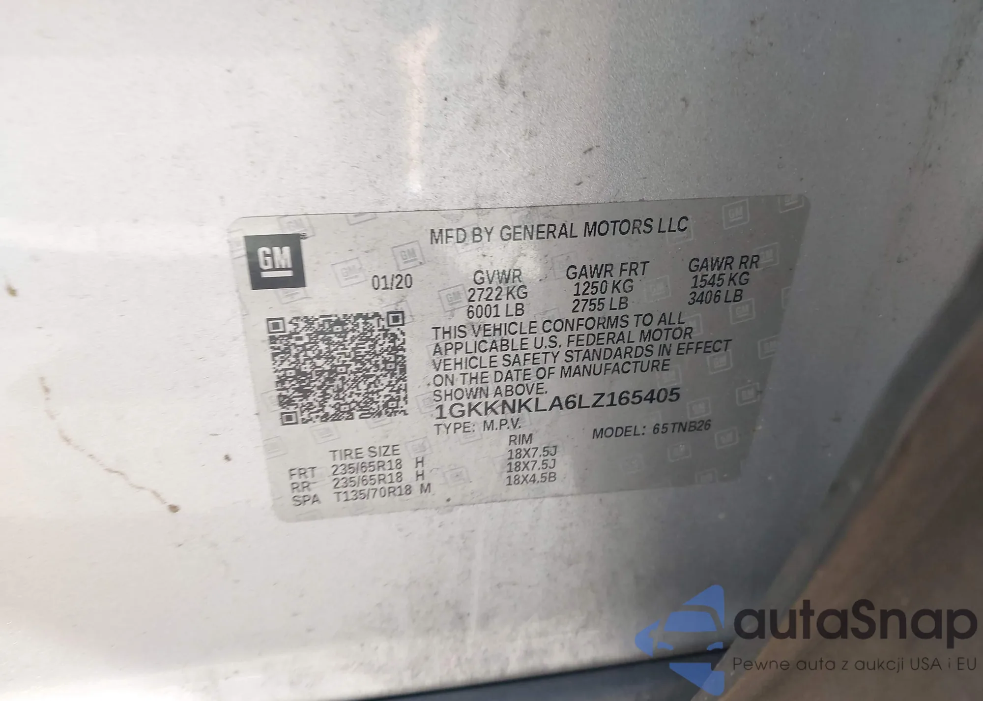 • VIN 1GKKNKLA6LZ165405