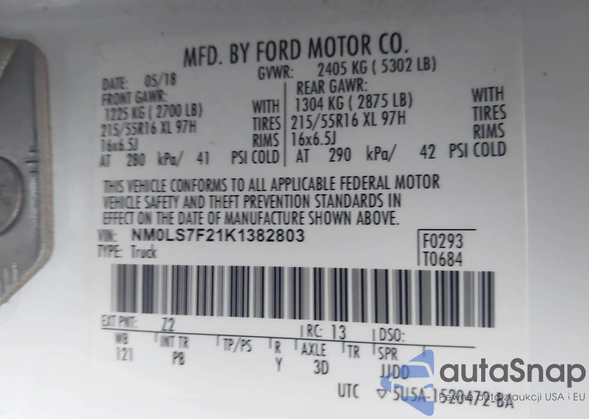 LOT: 43005159 VIN: NM0LS7F21K1382803