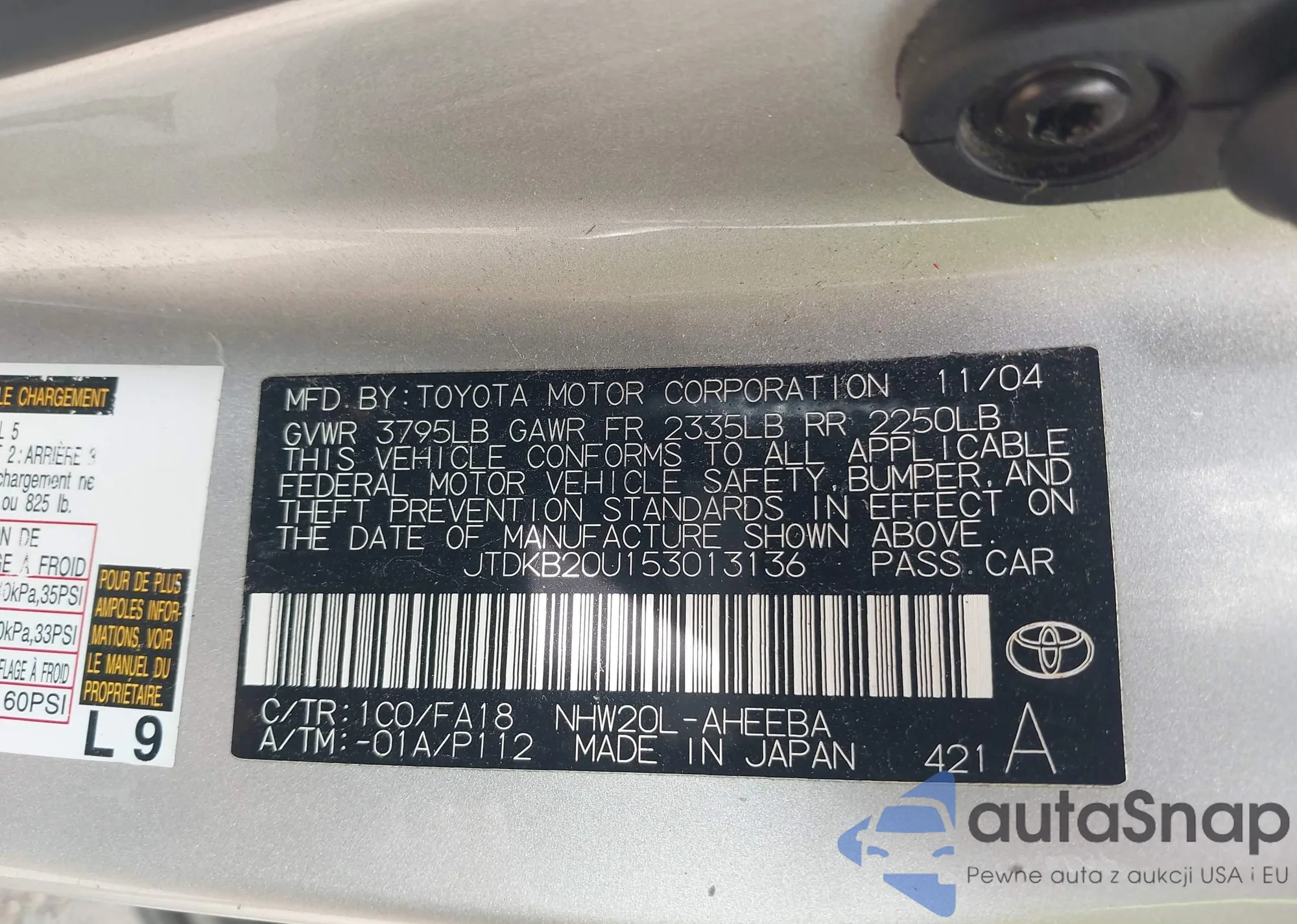LOT: 43029977 VIN: JTDKB20U153013136