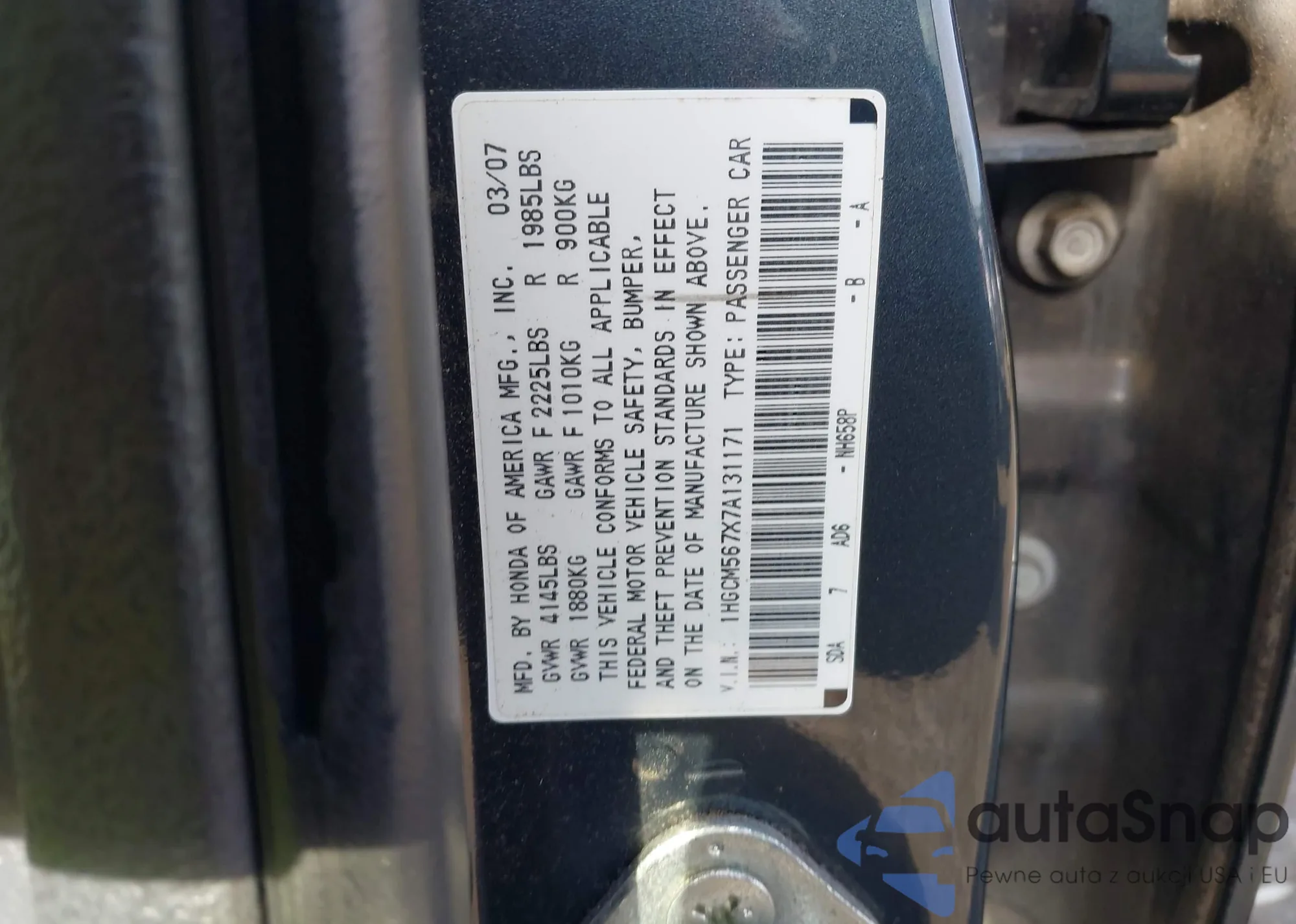• VIN 1HGCM567X7A131171