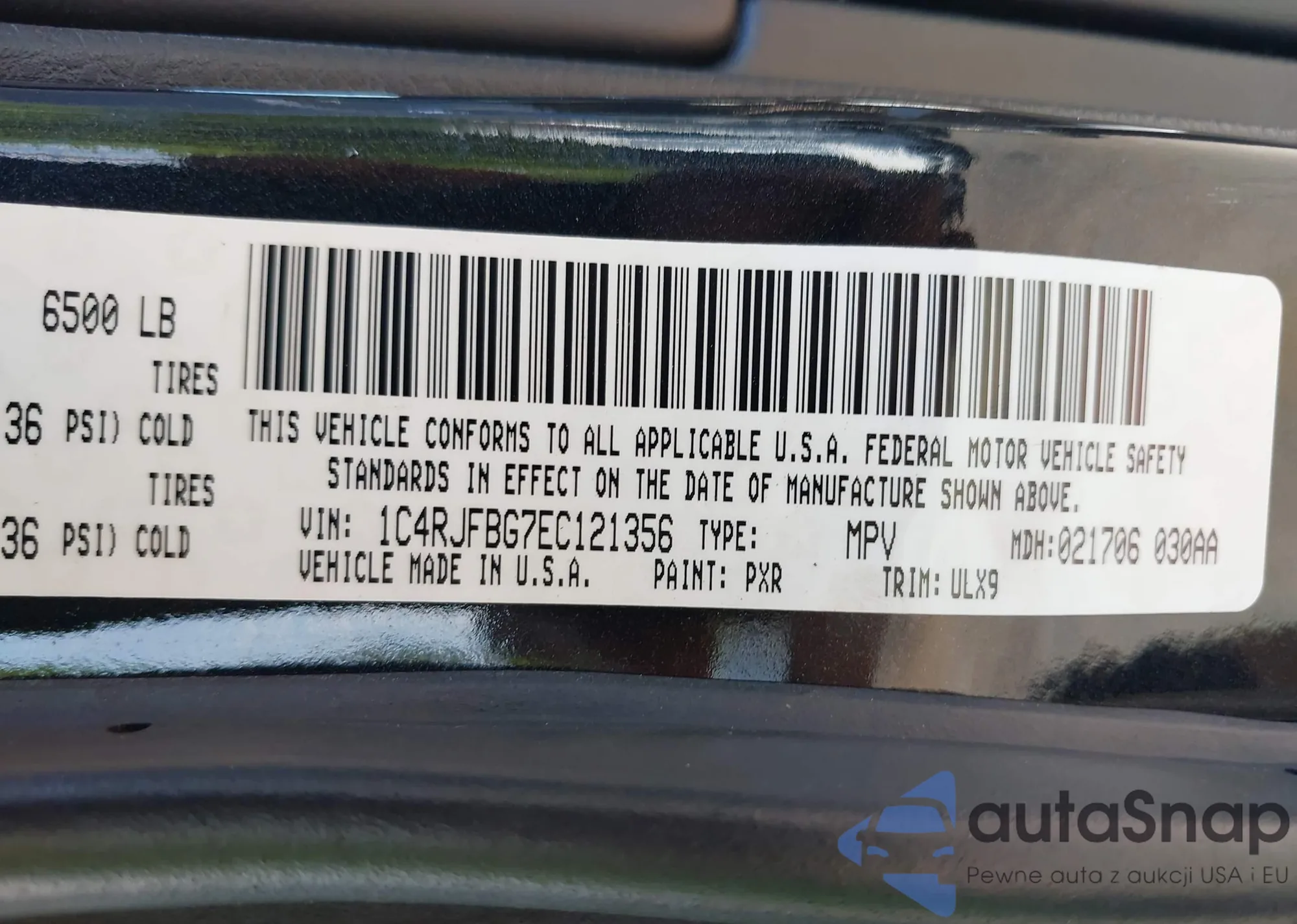 • VIN 1C4RJFBG7EC121356