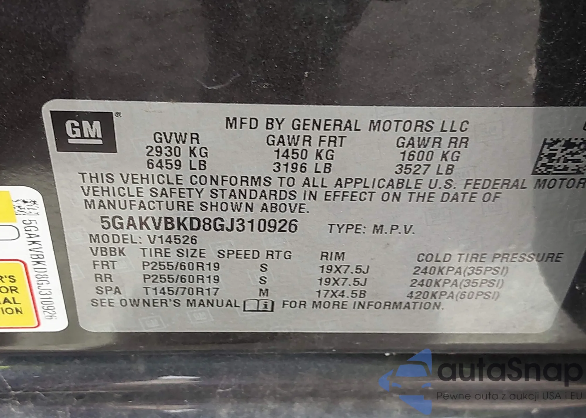• VIN 5GAKVBKD8GJ310926