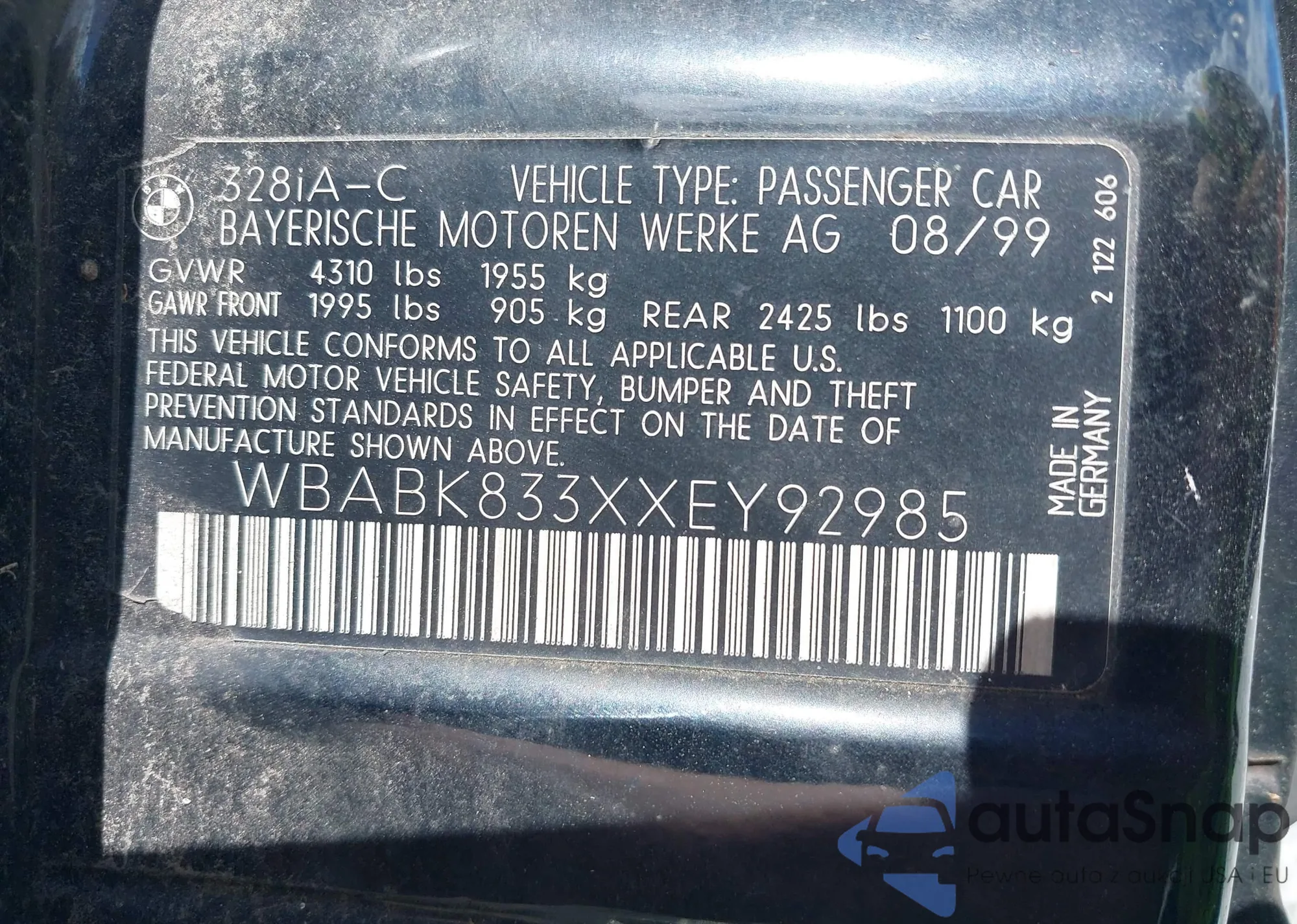 LOT: 42969010 VIN: WBANE53527CY06598