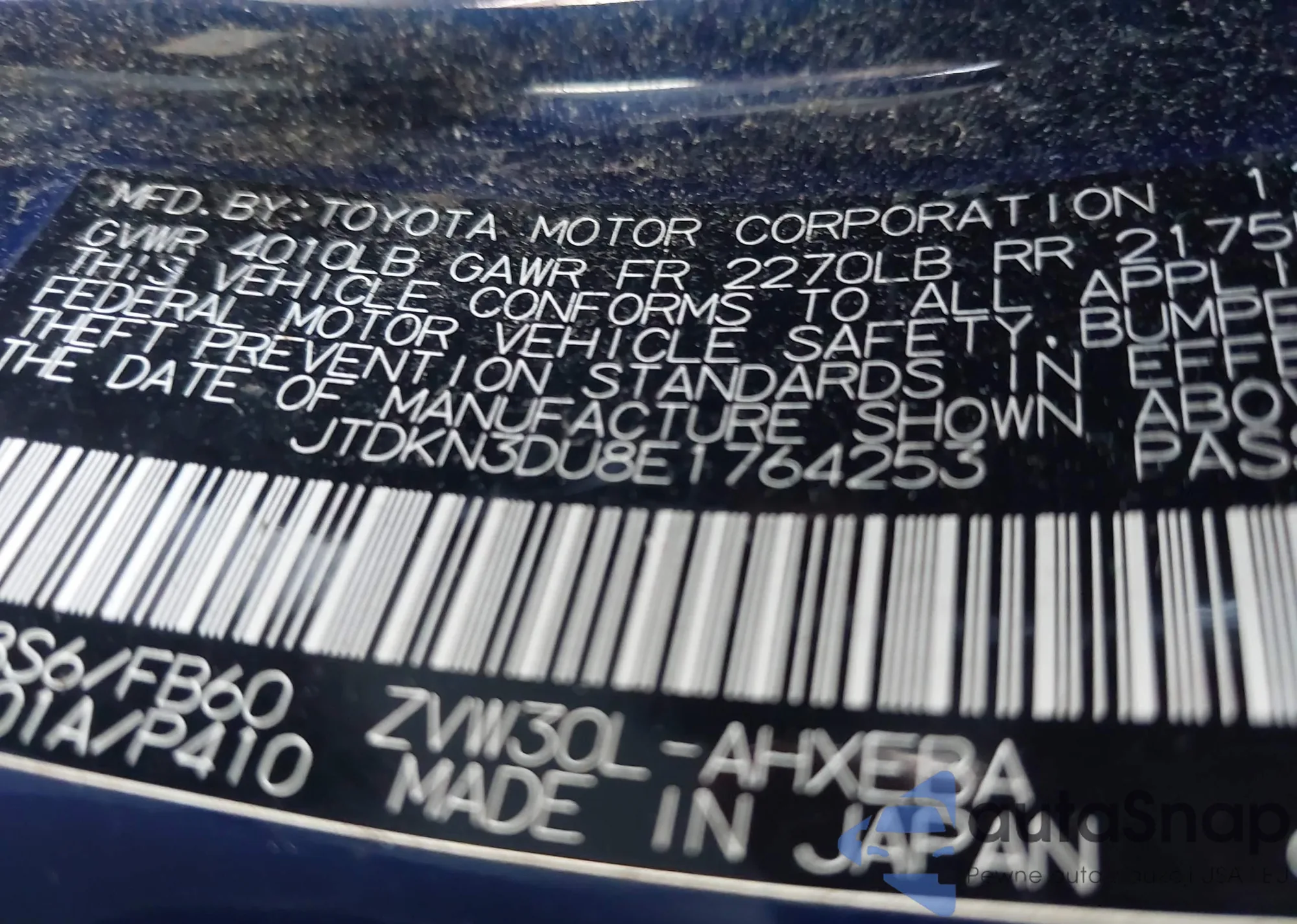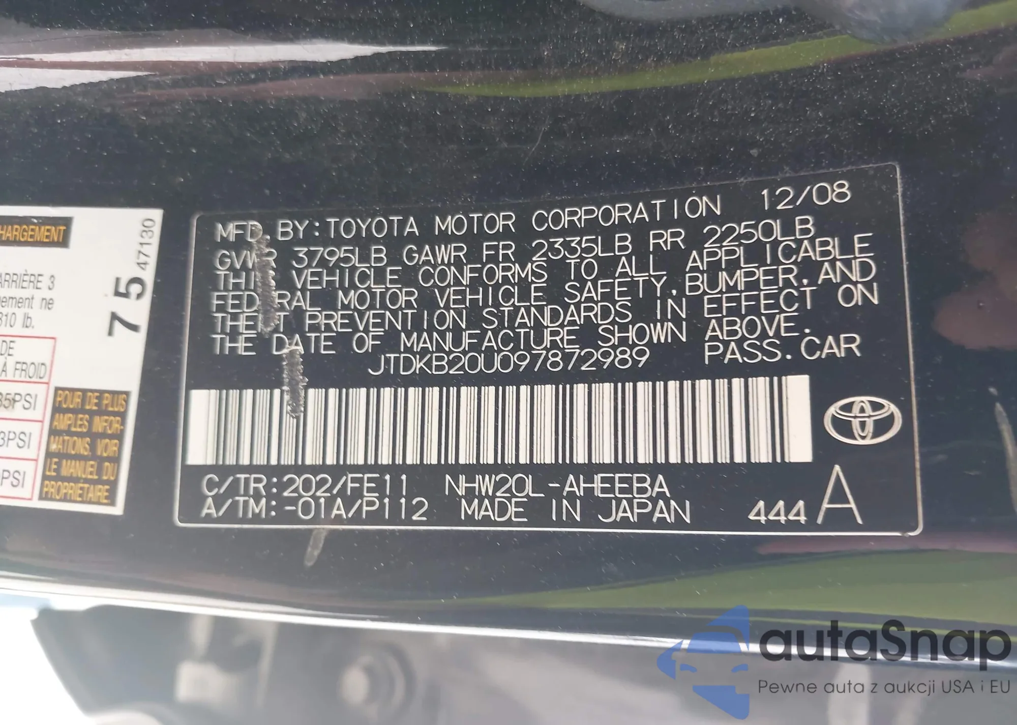 LOT: 43086268 VIN: JTDKB20U097872989