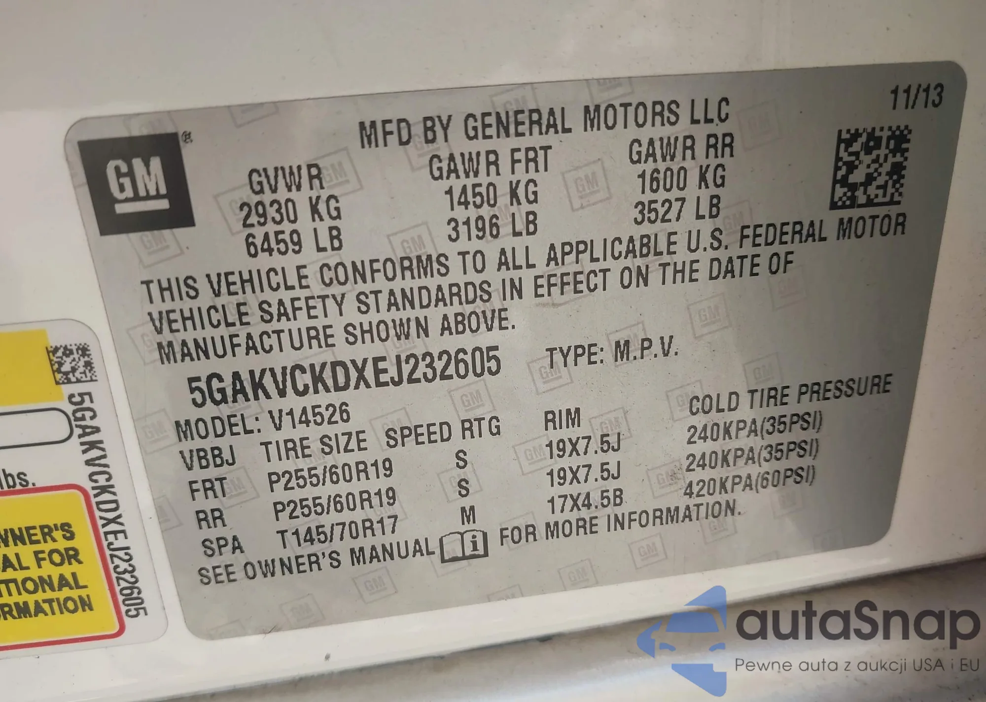 LOT: 43086298 VIN: 5GAKVCKDXEJ232605