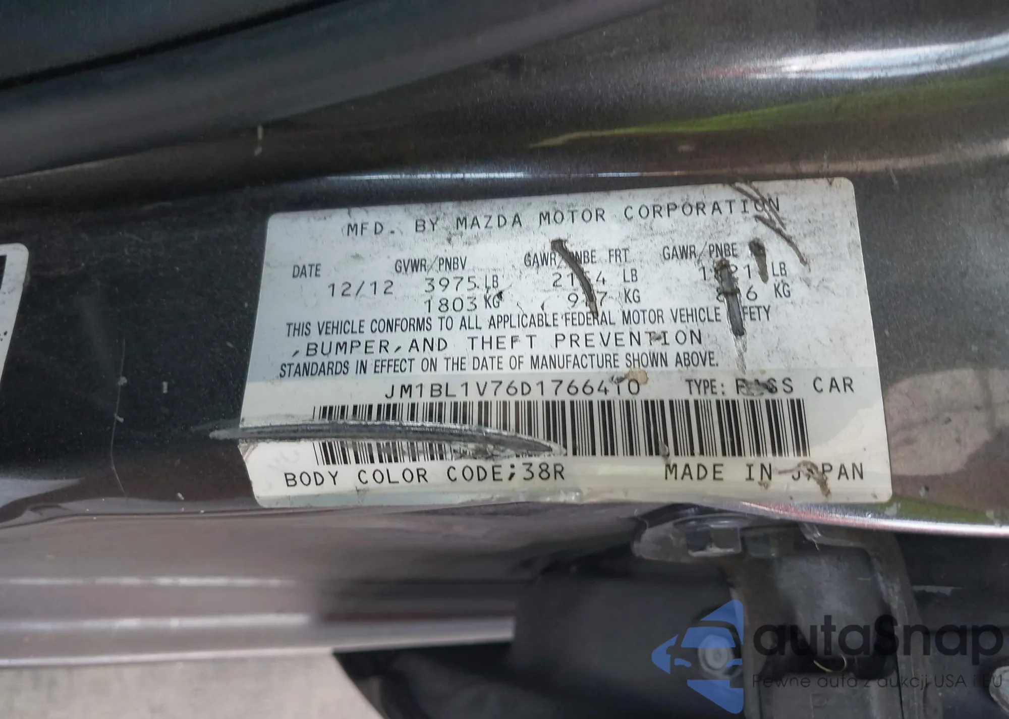 LOT: 43091691 VIN: JM1BL1V76D1766410