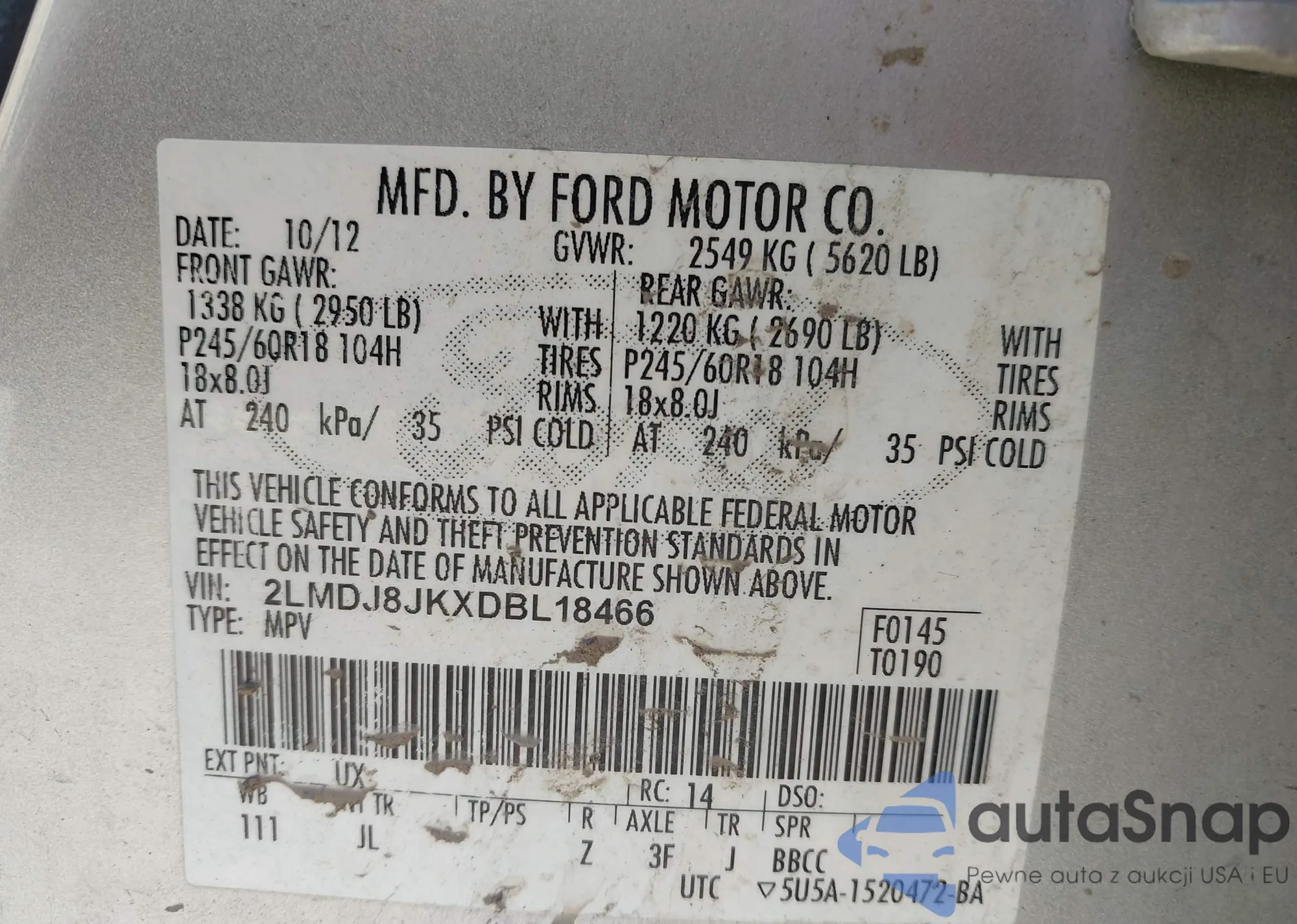LOT: 43014703 VIN: 2LMDJ8JKXDBL18466
