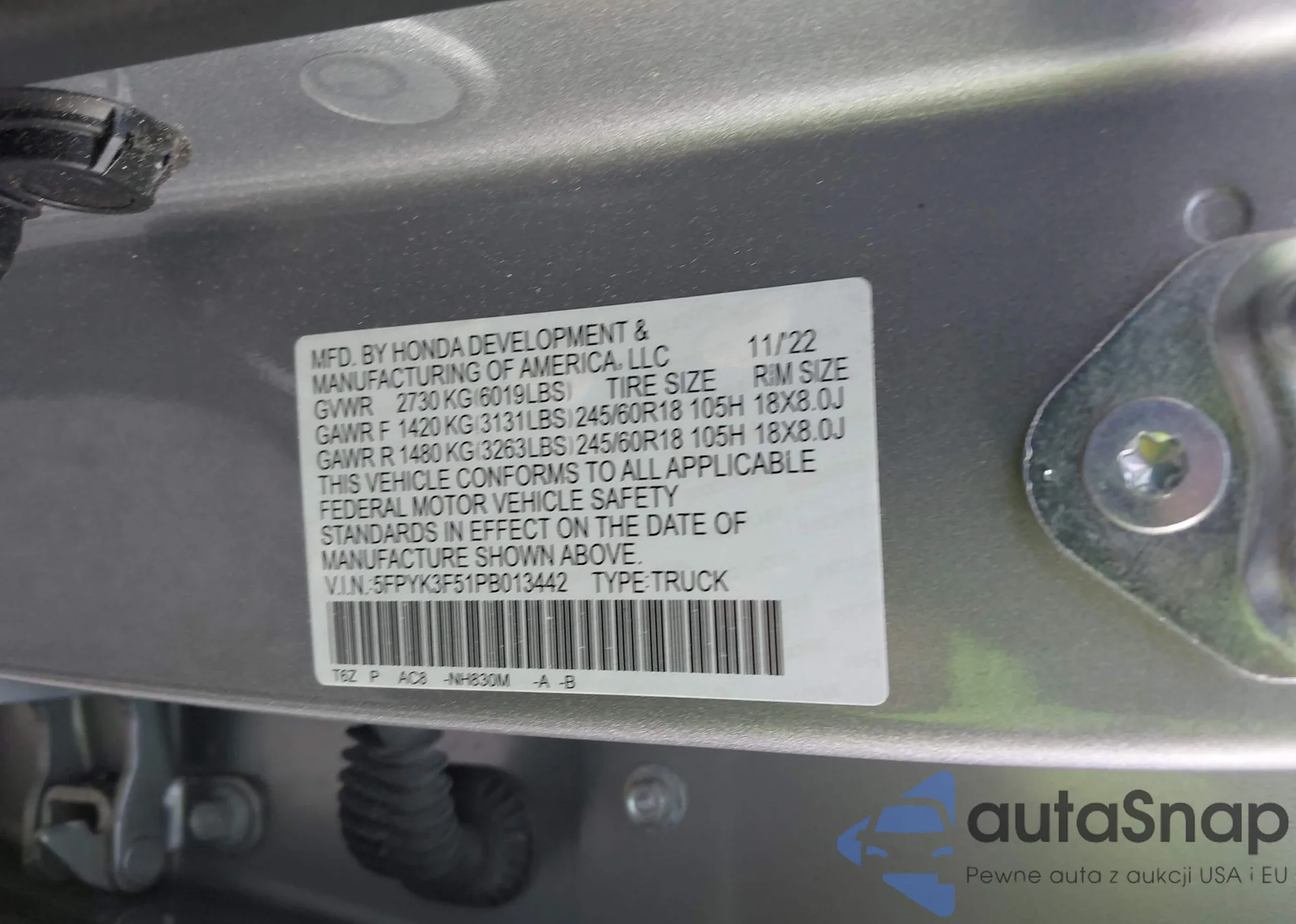 • VIN 5FPYK3F51PB013442