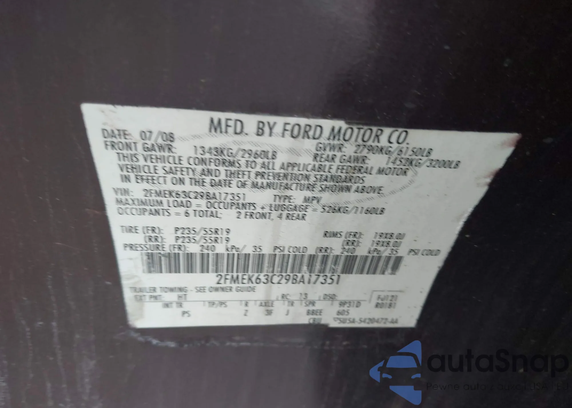 • VIN 2FMEK63C29BA17351
