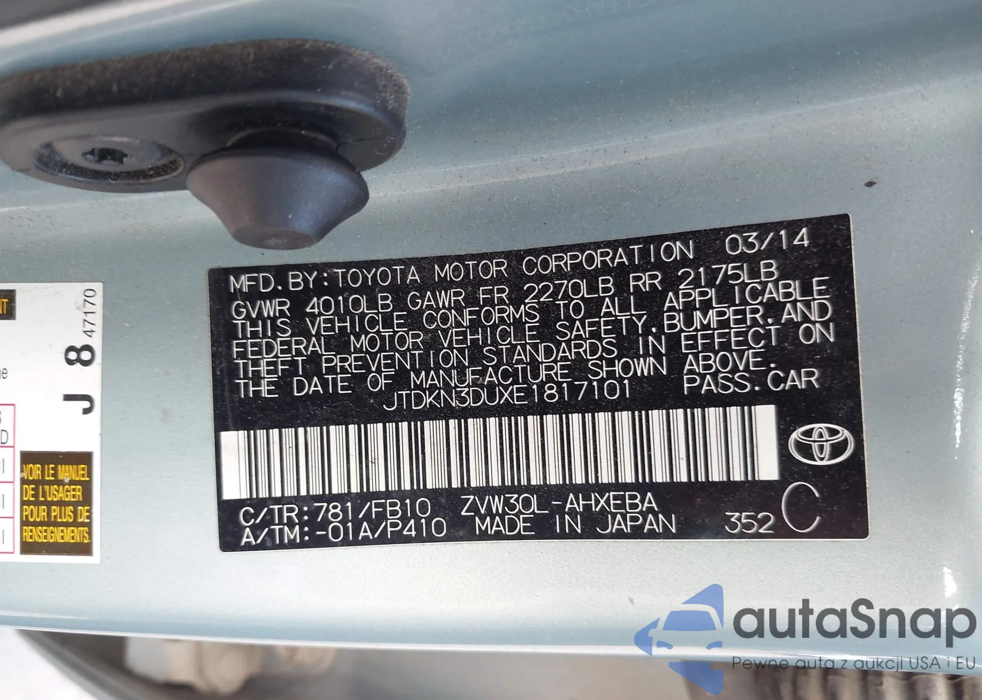 • VIN JTDKN3DUXE1817101