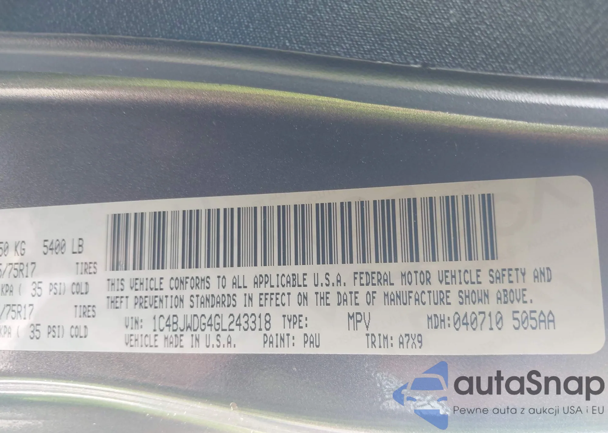 LOT: 43216657 VIN: 7SAYGDEE8PA055902