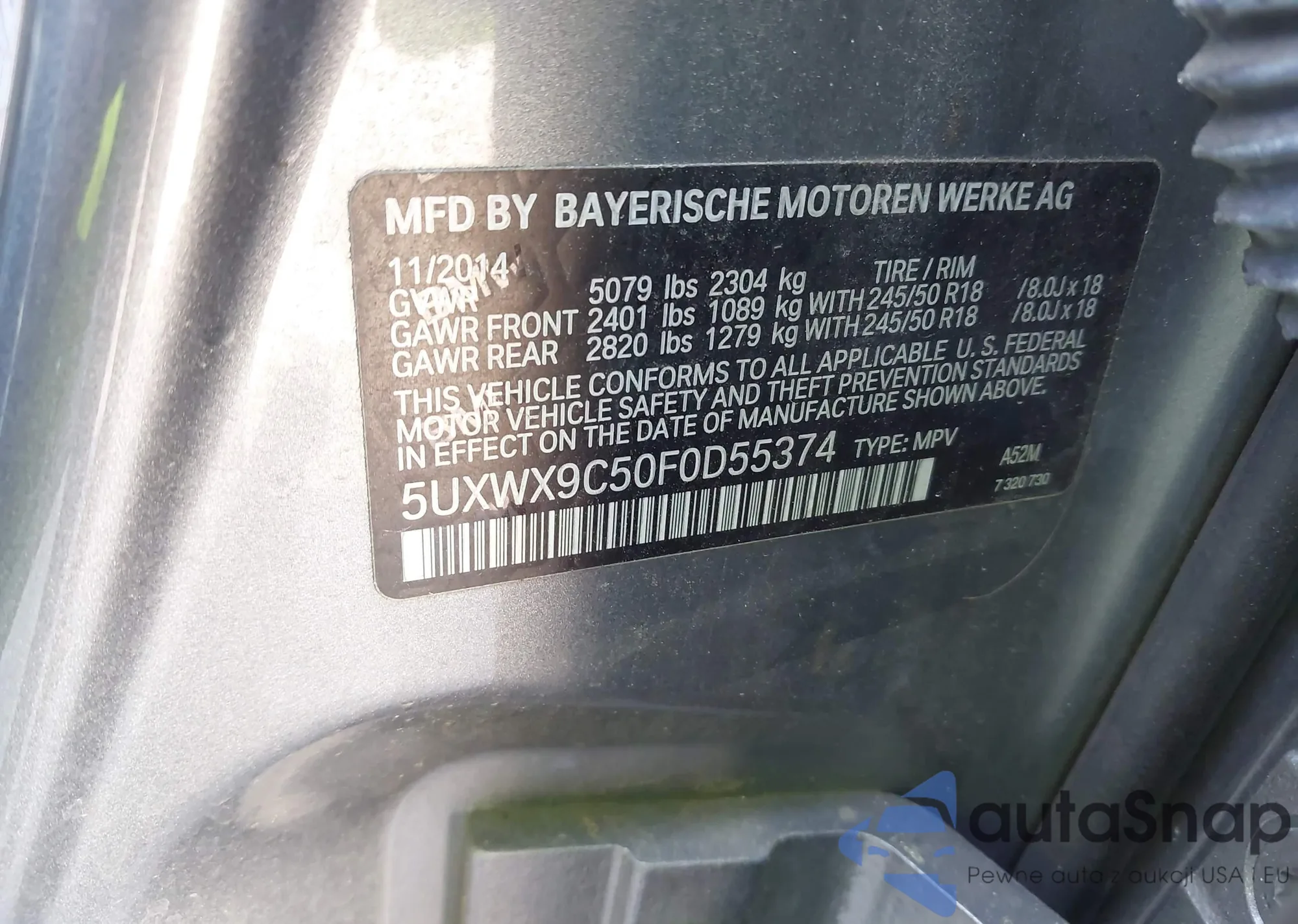• VIN 5UXWX9C50F0D55374