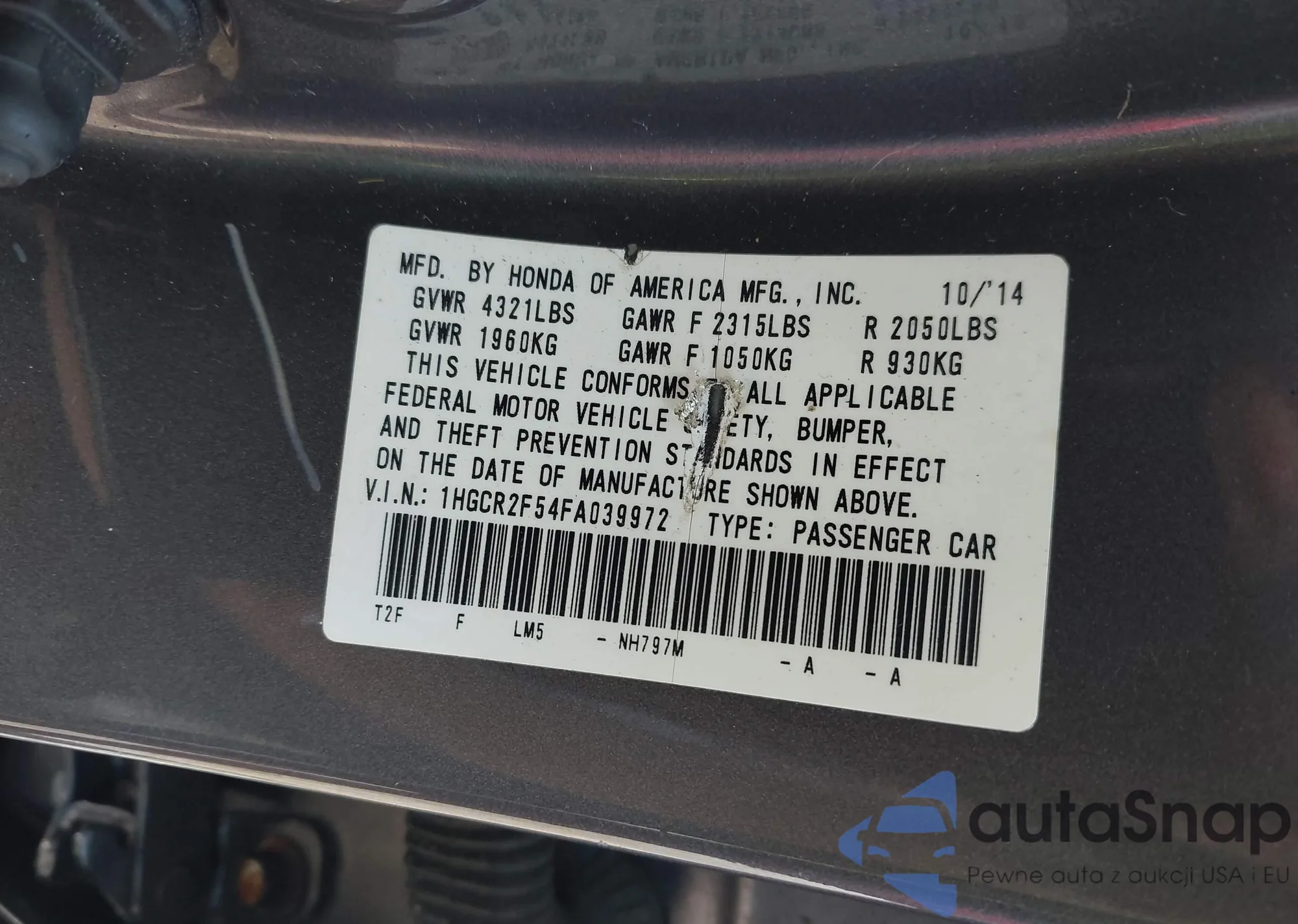 • VIN 1HGCR2F54FA039972
