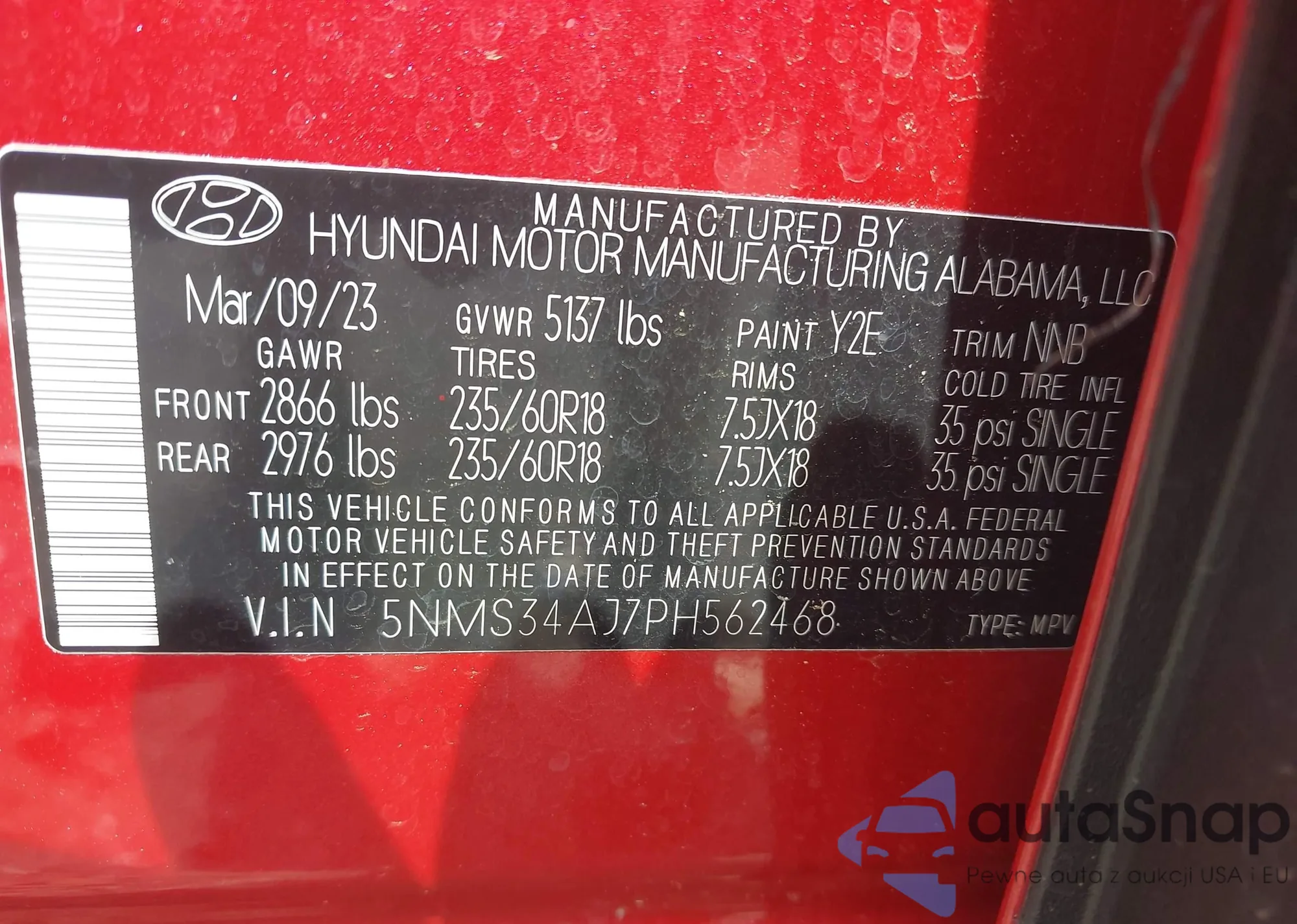 • VIN 5NMS34AJ7PH562468