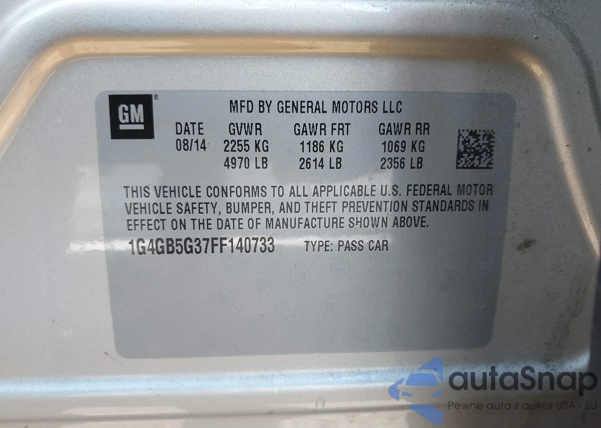 • VIN 1G4GB5G37FF140733