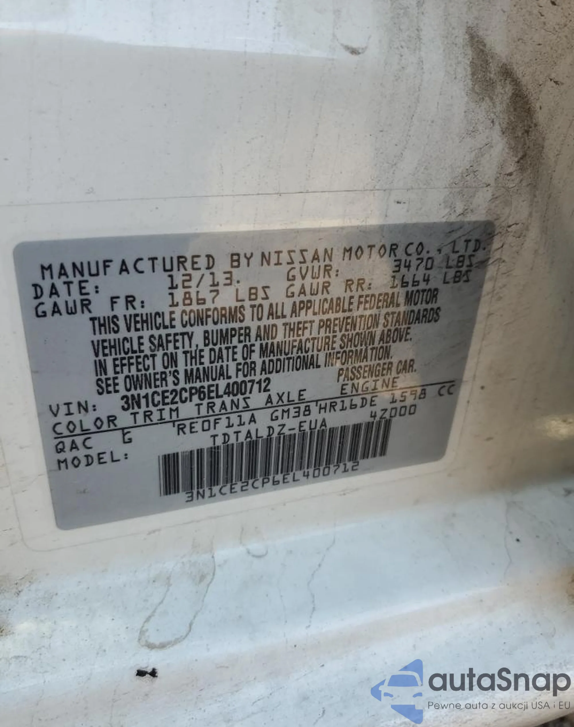 • VIN 3N1CE2CP6EL400712