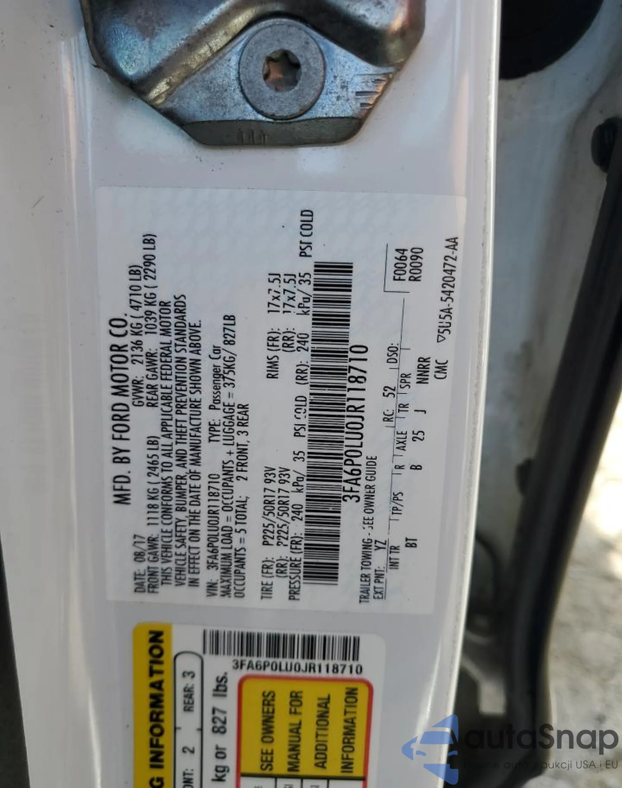 • VIN 3FA6P0LU0JR118710