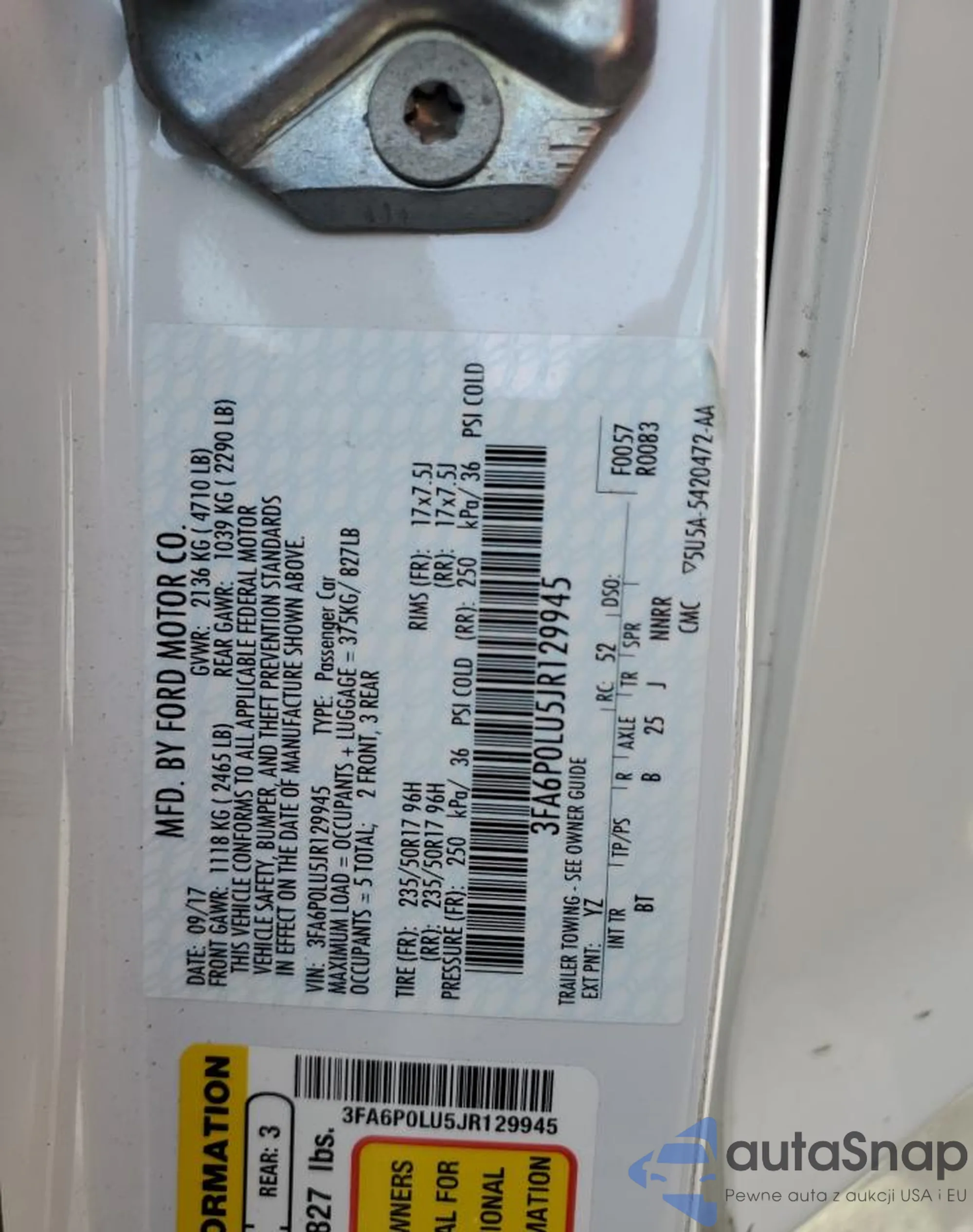 • VIN 3FA6P0LU5JR129945
