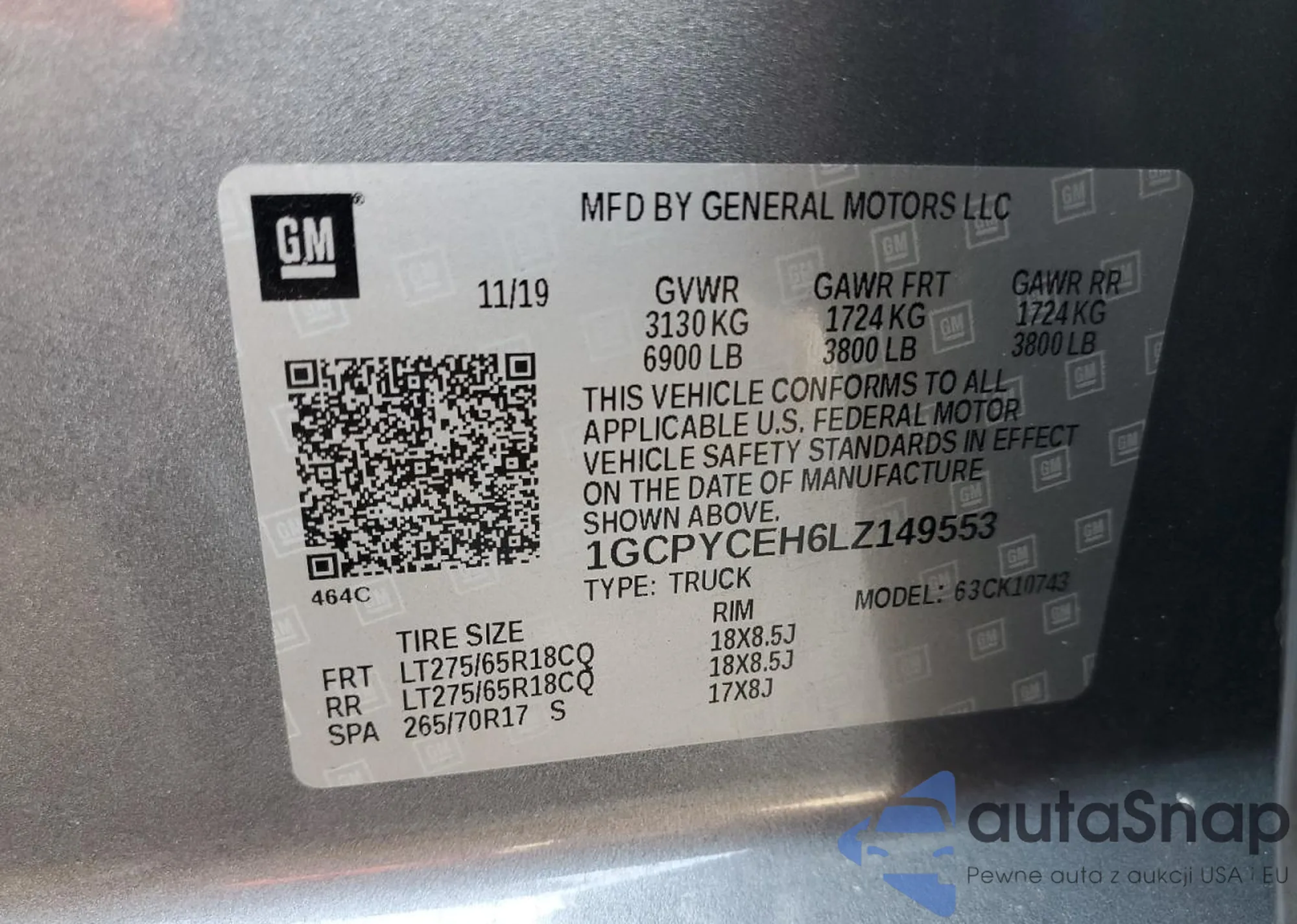 • VIN 1GCPYCEH6LZ149553