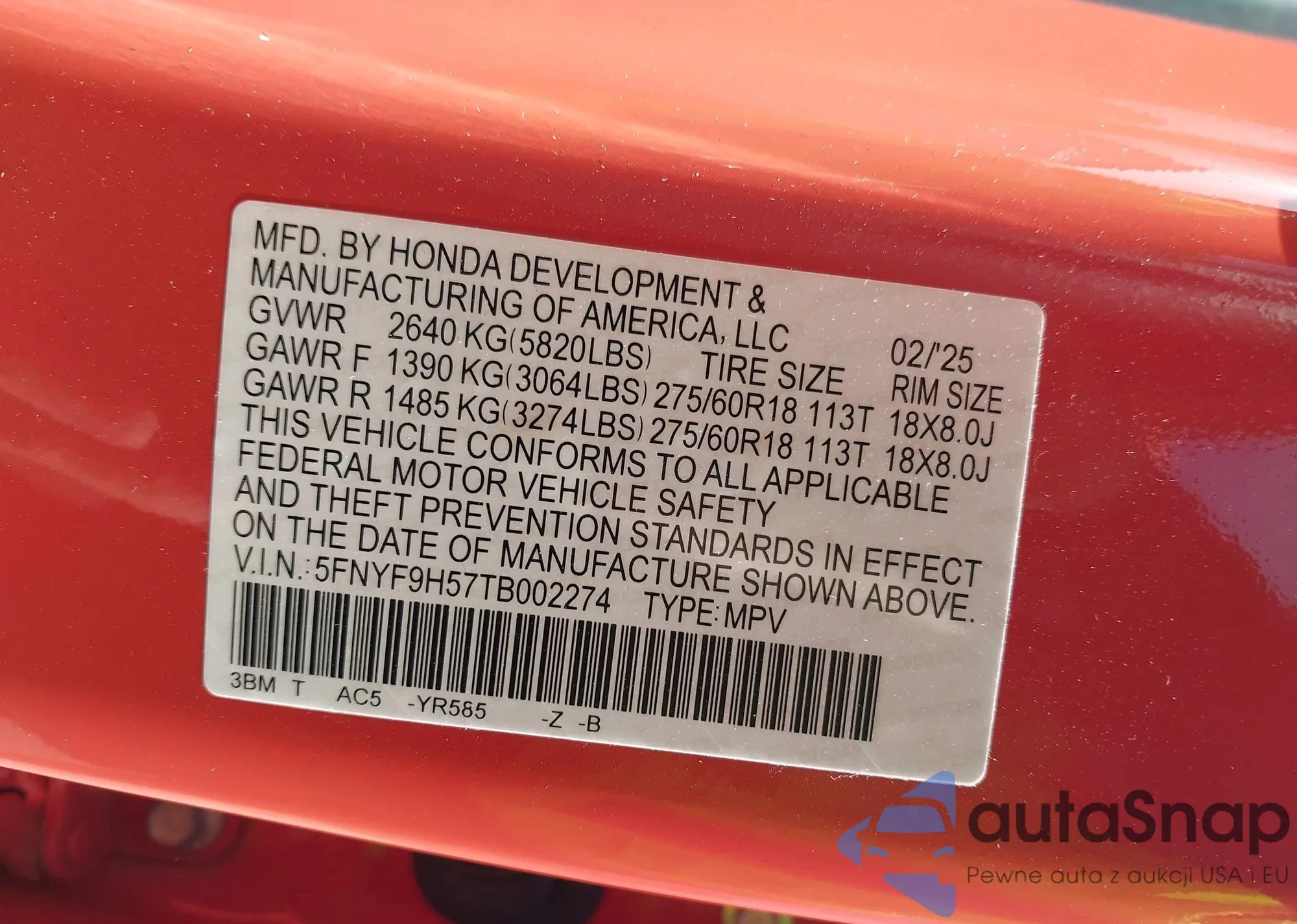 LOT: 42938570 VIN: 2T3WFREV3FW147581