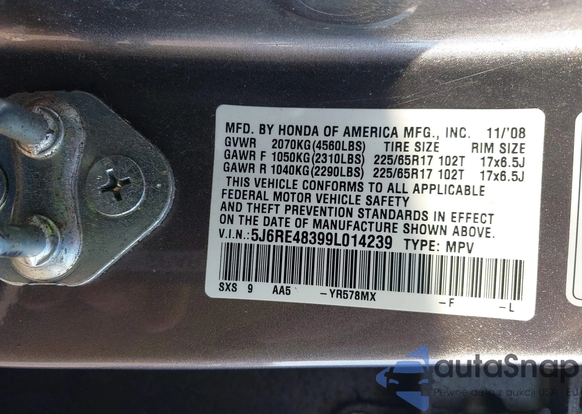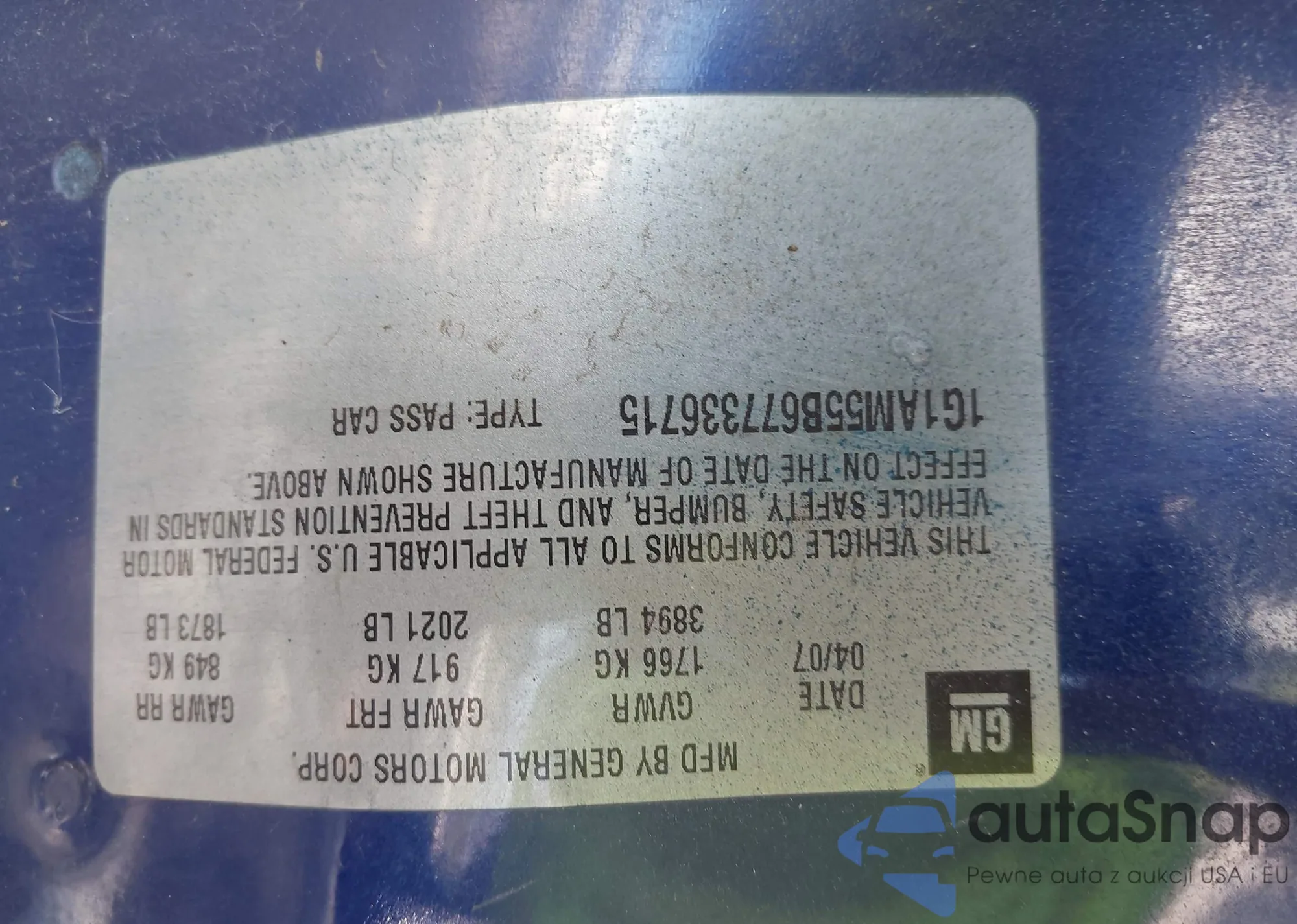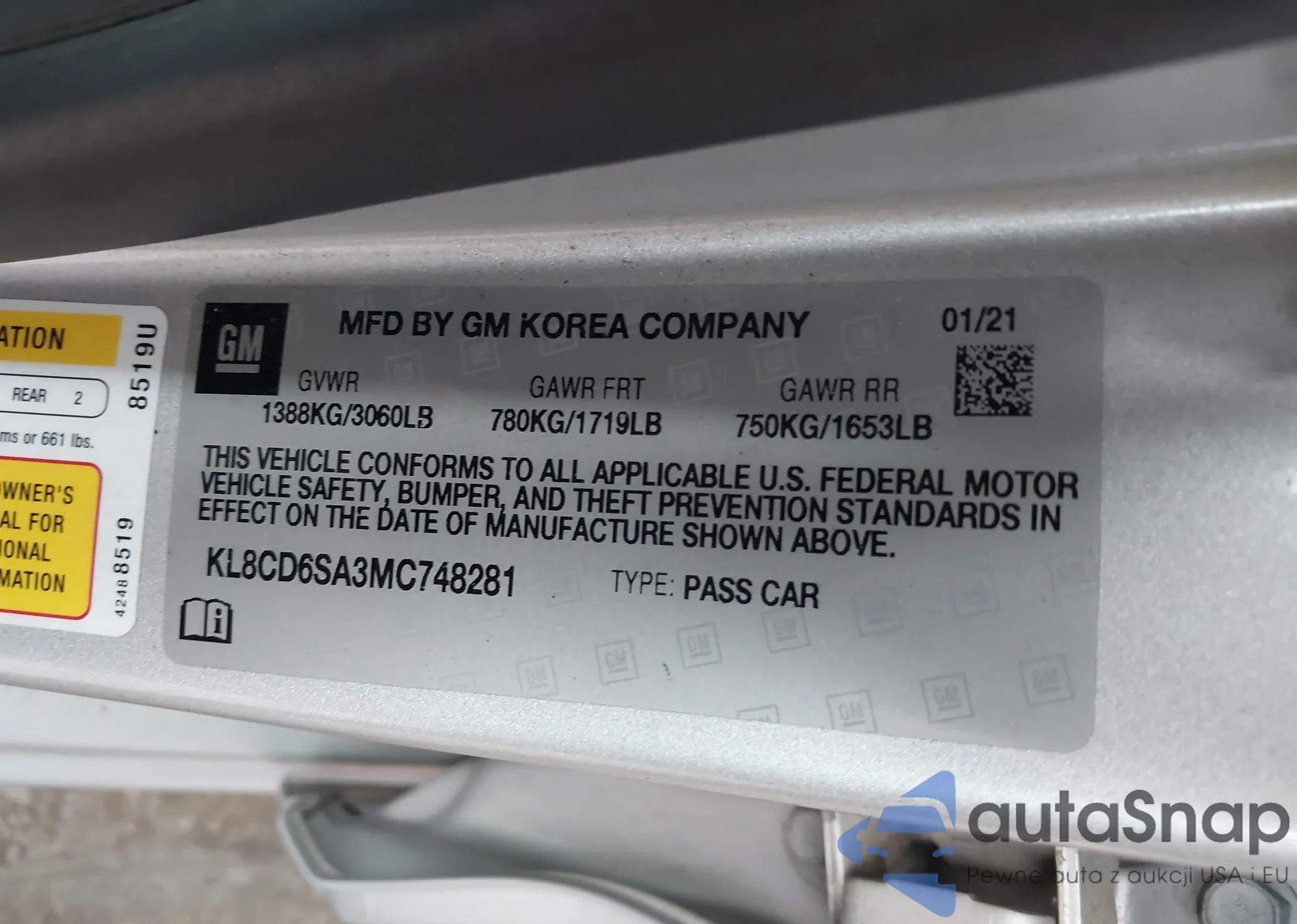 • VIN KL8CD6SA3MC748281