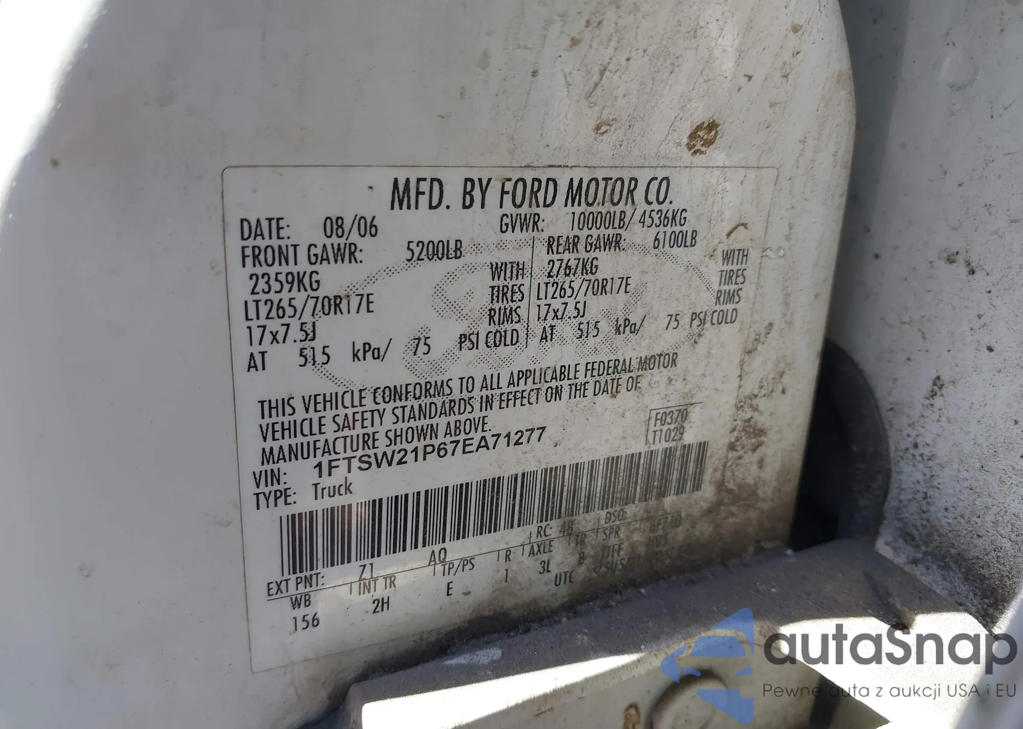 LOT: 41645837 VIN: 1FTSW21P67EA71277