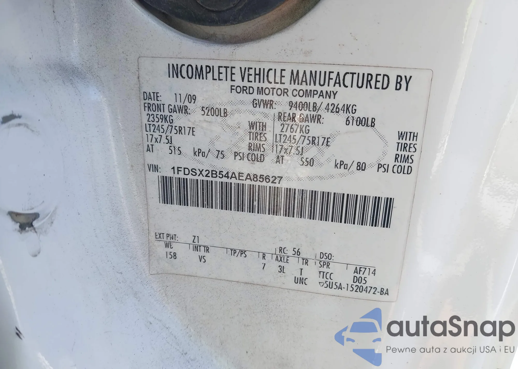 • VIN 1FDSX2B54AEA85627